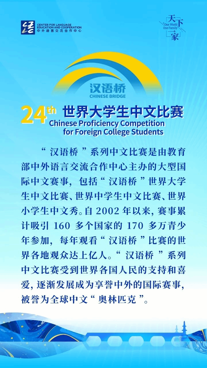 据了解,自2002年以来,“汉语桥”累计覆盖160多个国家和地区,吸引170多万名青少年参加海外预赛,共计7000余名外国青少年来华参加全球决赛,每年观看“汉语桥”比赛的全球观众数量达上亿人次,被誉为全球中文“奥林匹克”。今年是赛事落户福建的第二年,借助这一全球化中文赛事,福建将充分展示侨务大省、开放高地、文化厚土的三重优势,推动教育“借船出海”,助力国际中文教育高质量发展。