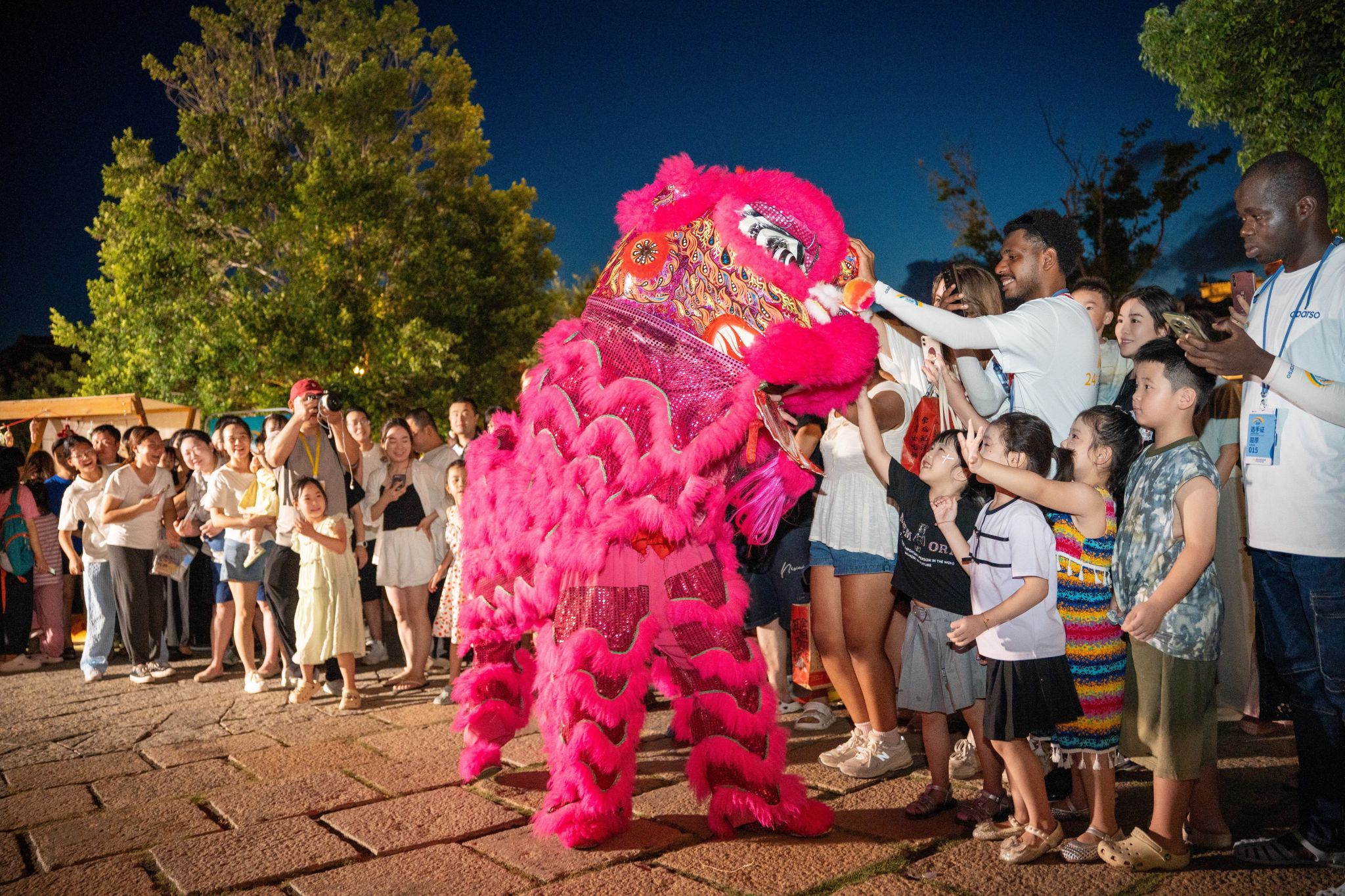 表演间隙,队员们还热情邀请外国选手触摸狮头、手把手教学,体验舞狮的魅力。来自非洲卢旺达的选手白星辰兴奋地说:“狮子的动作太灵活了,每一个眼神都像有故事,这是我第一次近距离感受中国传统舞狮,比课本里描述的更生动!”