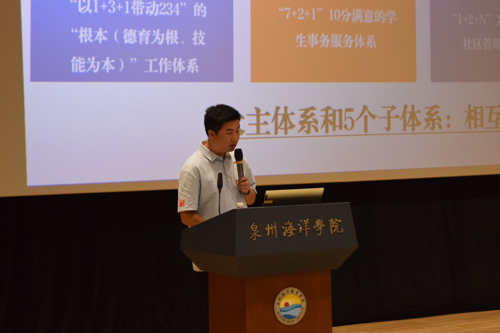 海洋工程学院辅导员常浩群老师作为新入职辅导员代表上台发言,她分享了加入泉州海洋职业学院大家庭的激动心情,表达了扎根学生工作、潜心育人的坚定决心,并承诺将以饱满的热情、务实的作风,尽快融入团队,为学校学生工作发展贡献青春力量。真挚的发言赢得了现场热烈掌声。