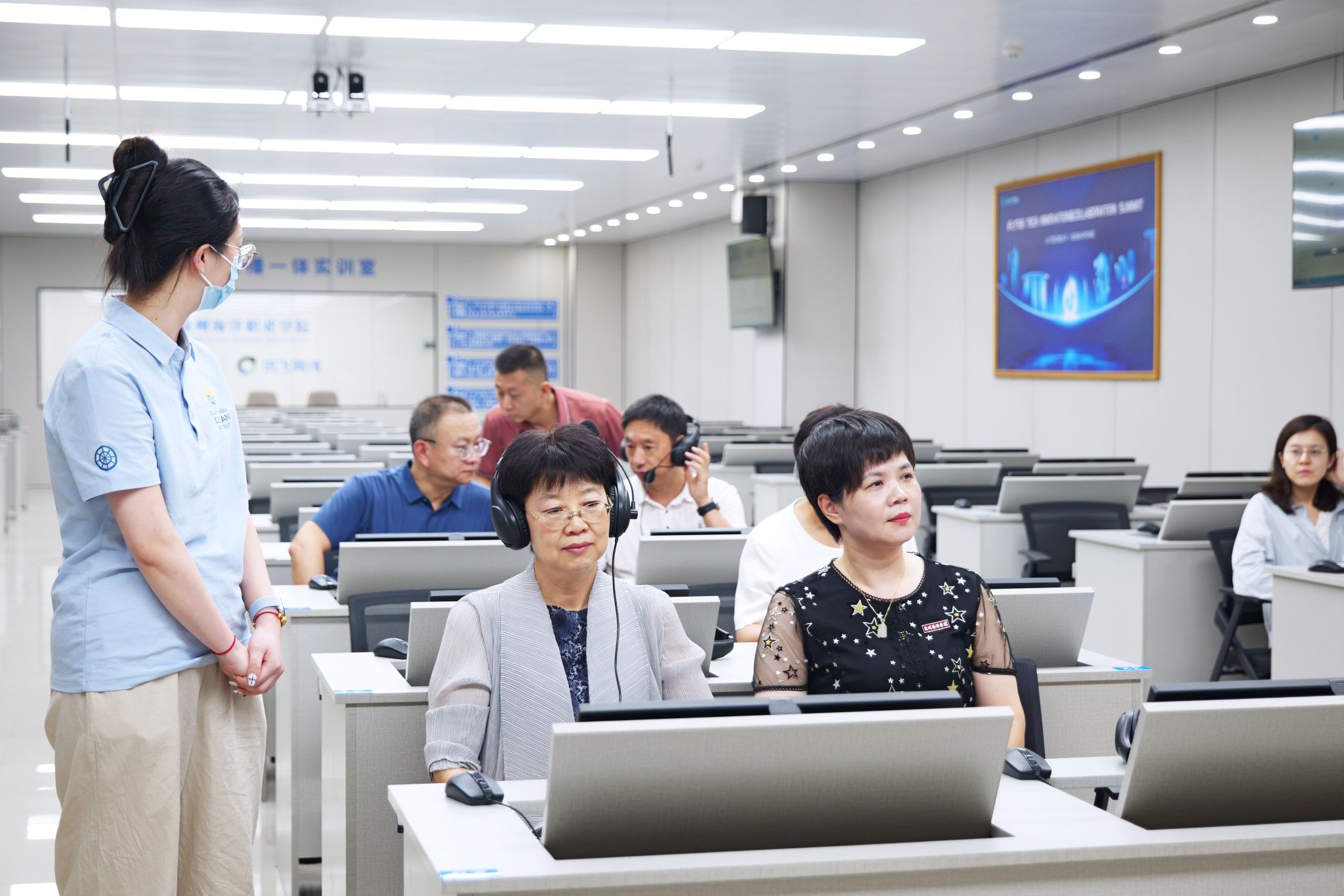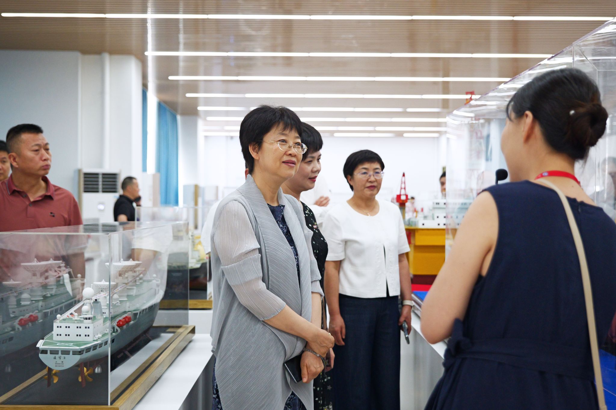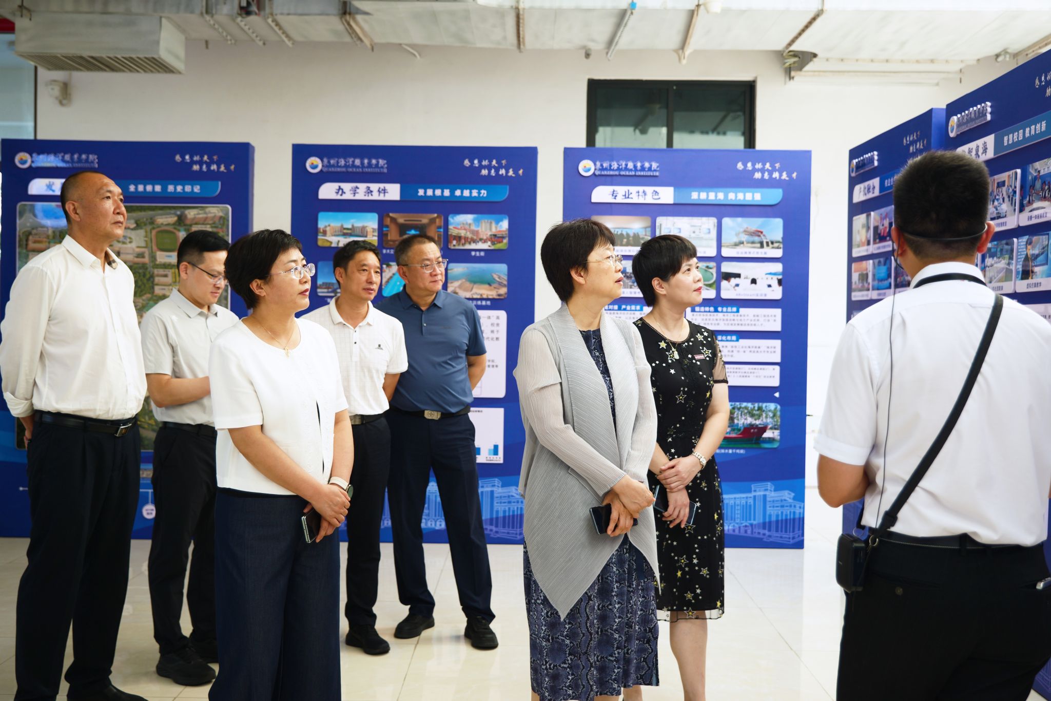 调研组先后参观了我校华为人工智能实训中心、世界特种船舶展示厅、全国首家船员考试智慧考场以及无人机训练基地等教学实训场所,详细了解学校在创新人才培养和服务海洋经济发展方面的具体实践与成果。