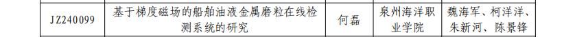 与此同时,海洋工程学院何磊副教授所主持的福建省教育厅科技类重点项目,获泉州市教育局与财政局2025年高校提升办学水平专项资金5万元支持。该项目聚焦前沿科技领域,此项资金将直接用于推进项目的深入研究和实践应用,为科研进展提供坚实保障。