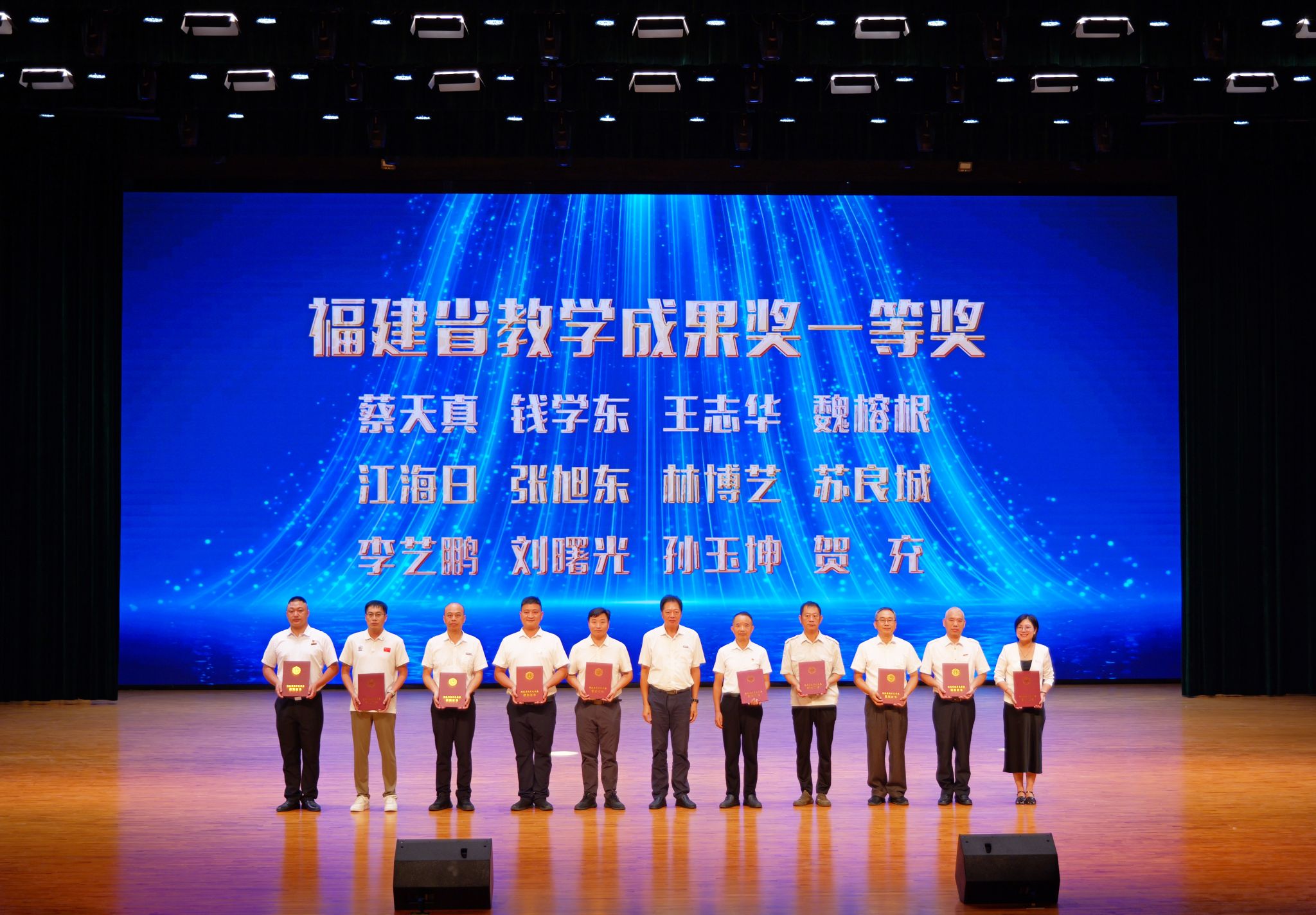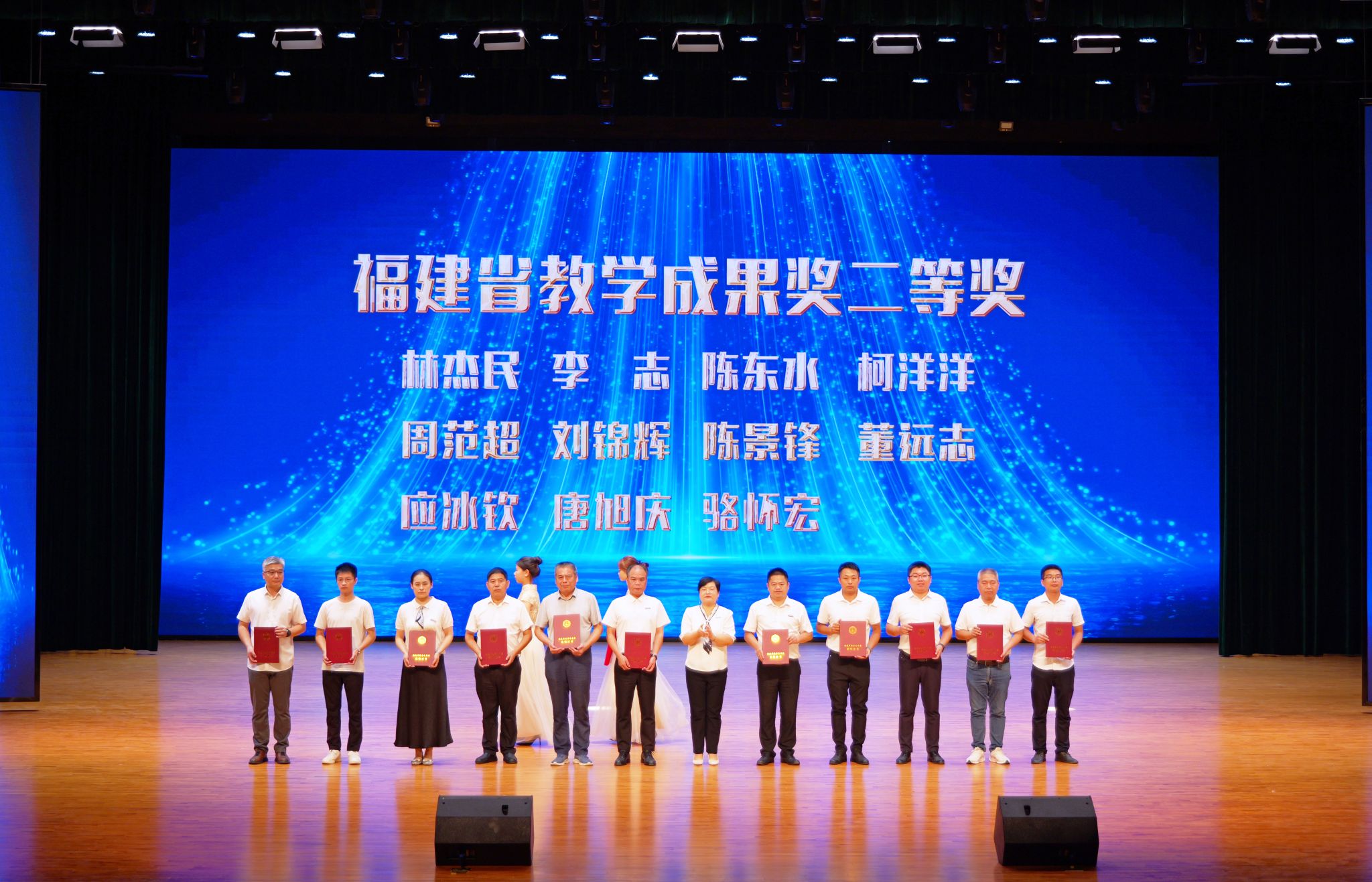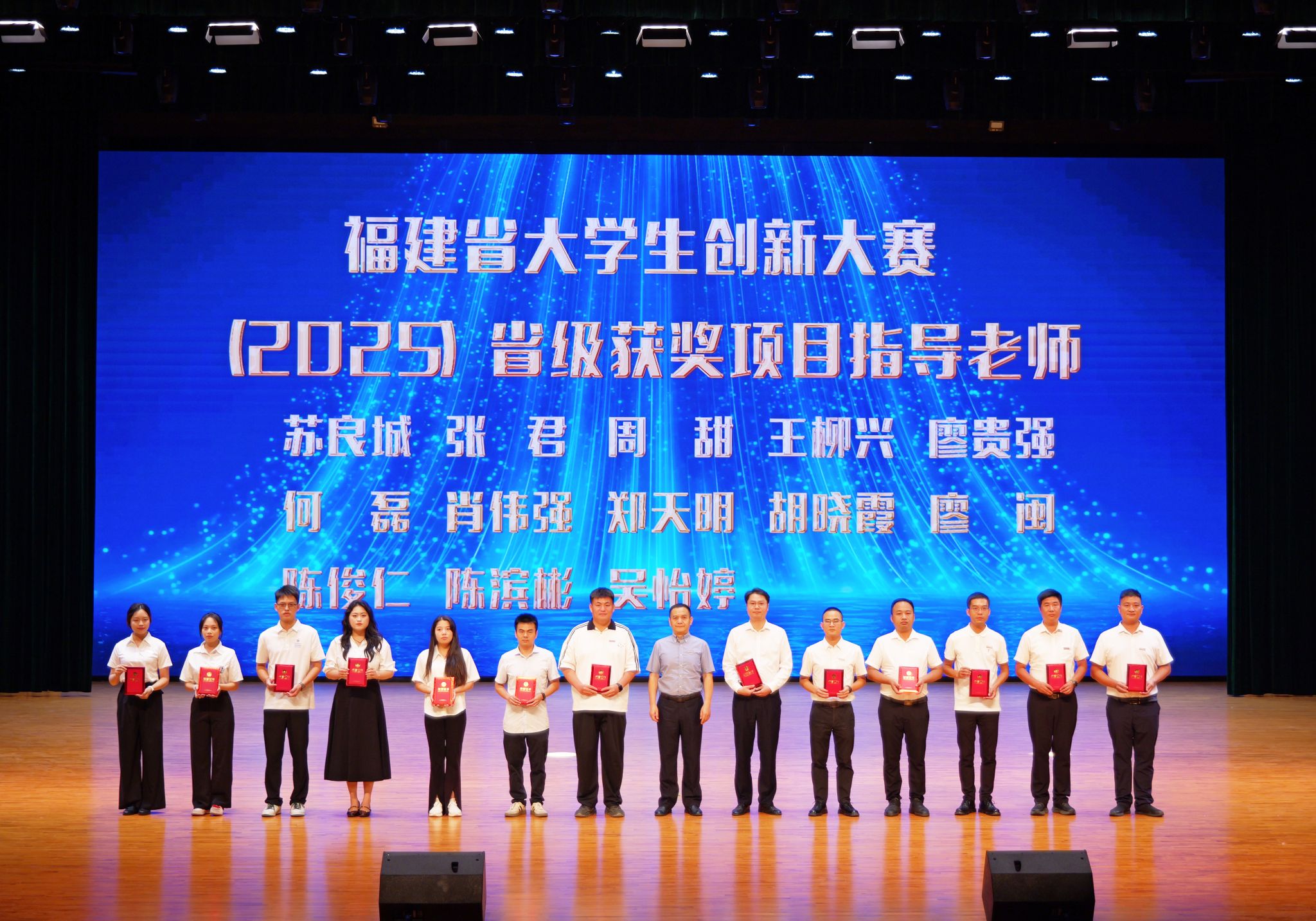 校长庄伟廉宣读优秀教师、优秀教育工作者、泉州市高校优秀辅导员、泉州市高校优秀思想政治教育工作者、入选2025年泉州市第一至第五层次人才教师的表彰决定。获奖教师依次上台接受荣誉,现场掌声不断,气氛隆重热烈。