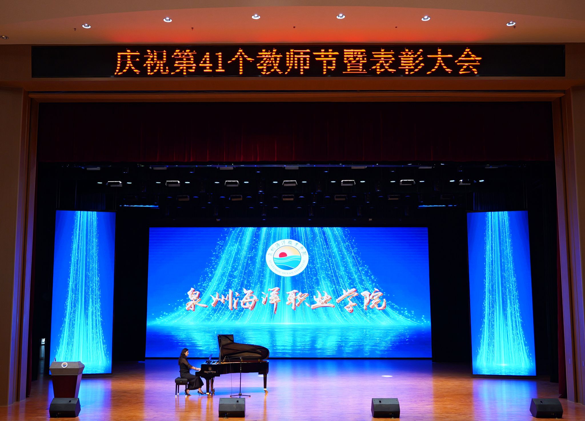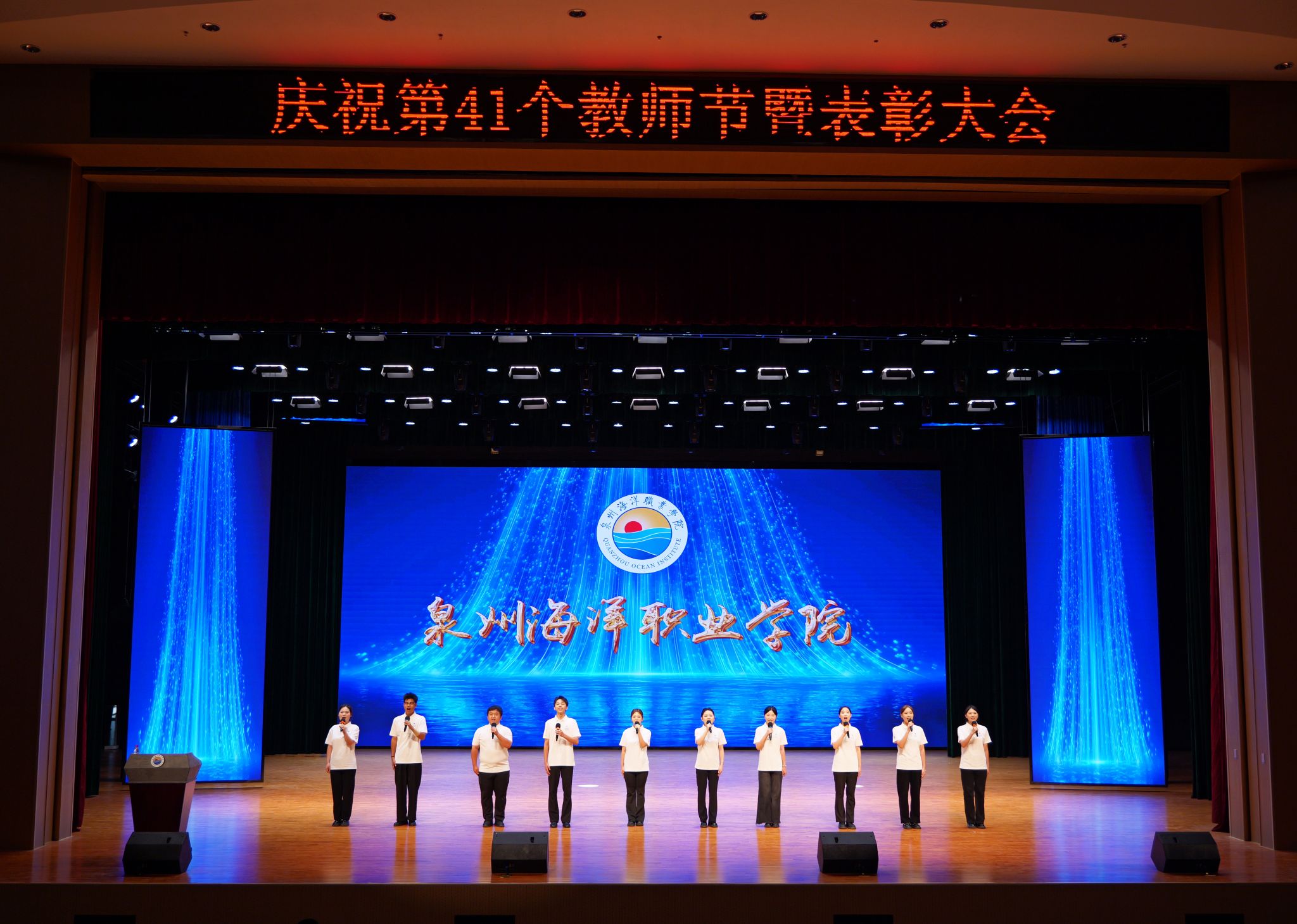 【新闻中心讯 人事处(党委教师工作部、教师发展中心)供稿 党委宣传部报道】为弘扬尊师重教风尚,表彰先进典型,凝聚教育发展合力,9月10日,学校在国际学术交流中心大礼堂举行第41个教师节庆祝表彰大会。全体校领导、各部门及二级学院党政负责人、受表彰对象与全体教职工齐聚一堂,共庆节日、共享荣光、共话未来。