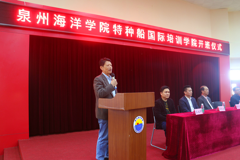 新闻中心讯(陈东水供稿 党政办报道)12月17日,泉州海洋学院特种船国际培训学院在2204举行了开班仪式。学院董事长蔡天真先生,校长吴广华教授,厦门华洋海事有限公司总经理、特种船国际培训学院院长胡从池先生,泉州永顺船舶服务有限公司总经理郭永坤先生,学院相关部门负责人和学生代表参加了本次开班仪式,会议由特种船国际培训学院陈东水副院长主持。