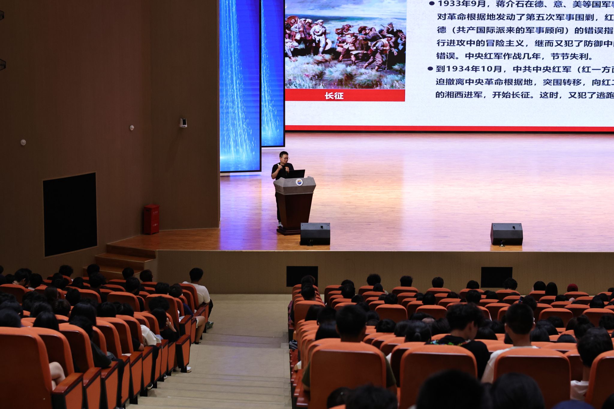经济管理学院党支部书记林钊为新生开讲“党的光辉历程”第一课,系统阐述中国共产党的性质、指导思想与百年征程,带领新生循脉初心、远眺使命。