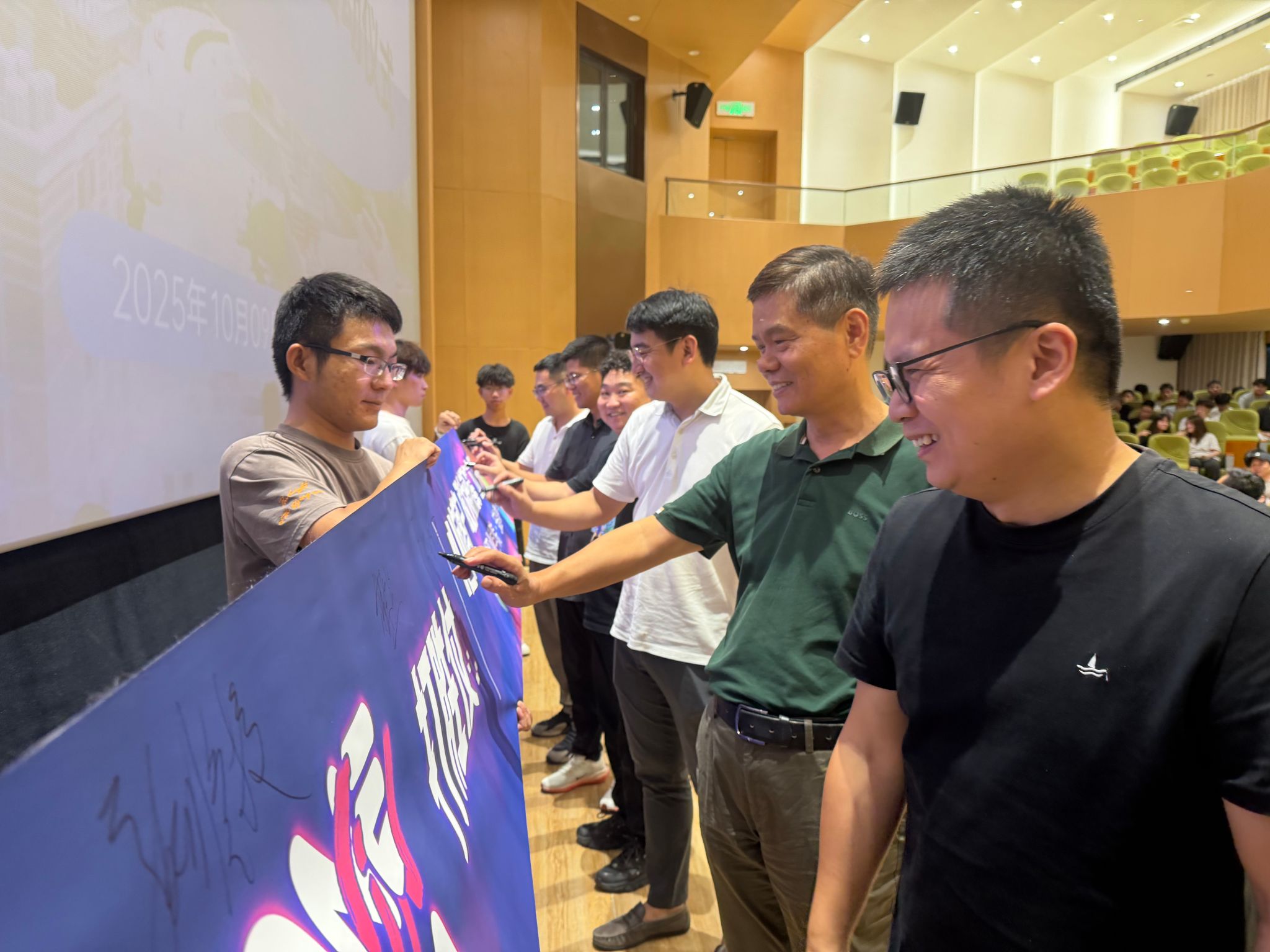 仪式最后,校院领导、安踏斐乐工作室代表与学生代表依次上台签名并合影留念。本次活动为校企协同育人搭建了高效平台,将有力推动学院人才培养质量再上新台阶。