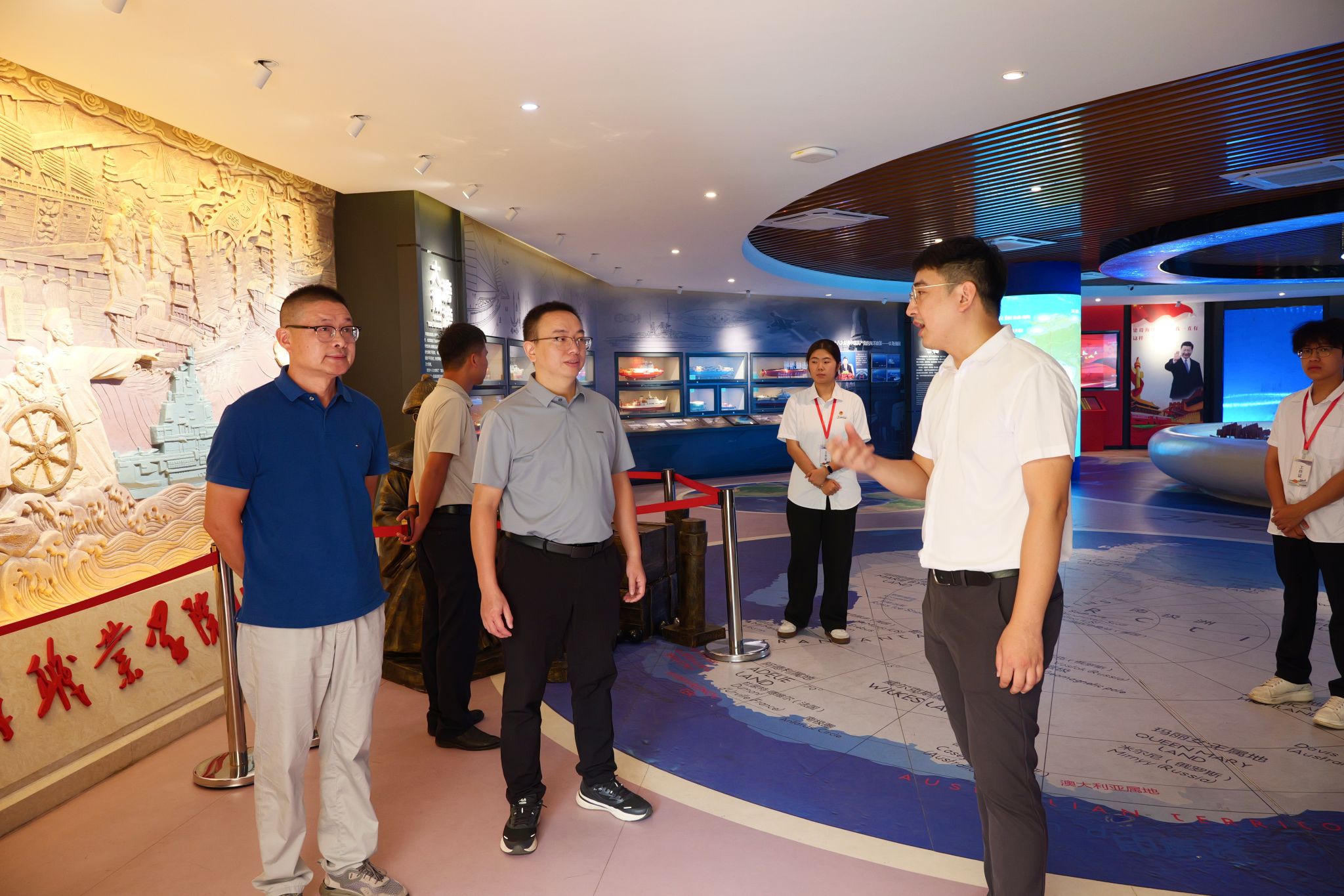 调研组一行先后实地走访了海权红馆、三创学院就业创业服务站及中经海农校办企业,现场观摩了360°全视景船舶操纵模拟器的运行演示,深入了解我校在船员教育培训、海洋文化育人、学生就业创业服务等方面的创新举措与扎实成果。调研组对学校立足海洋特色、深耕产教融合的办学实践给予了充分肯定。
