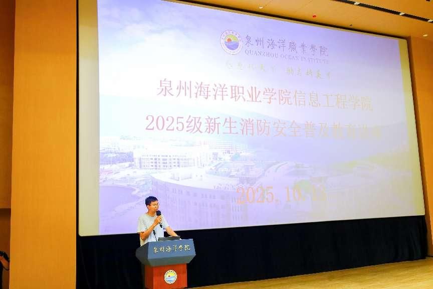 (新闻中心讯 党委保卫部供稿 党委宣传部报道)为全面普及消防知识、增强新生安全意识,10月下旬,学校党委保卫部联合信息工程学院,面向信工学院2025级全体新生,在图书馆报告厅与二号教学楼2204教室陆续举办多场新生消防安全普及教育讲座。活动特邀党委保卫部郭晓军老师担任主讲。
