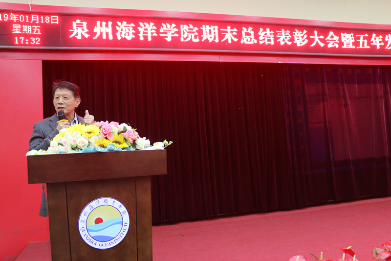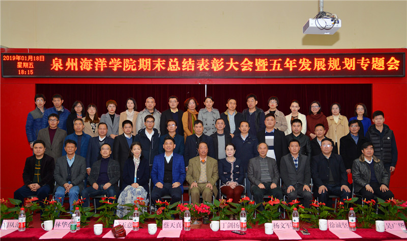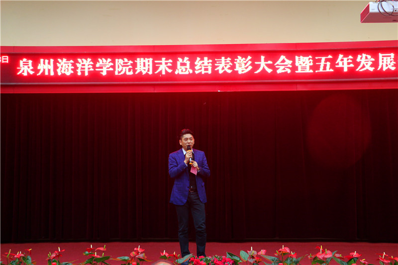 新闻中心讯(党政办报道)伴随着岁月匆匆的脚步,承载勤奋耕耘的喜悦。1月18日下午,我院在多功能报告厅举行期末总结表彰大会暨五年发展规划专题会。股东单位领导——闽海集团行政总裁丁剑扬先生及其夫人杨文军女士、总经理徐诚坚先生应邀参加会议,董事长蔡天真先生及其夫人蔡玉意女士、高级顾问林华东教授、校长吴广华教授、董事张宝定先生、董事长助理刘杰书教授出席大会,全体教职工及学生代表参加会议。本次大会由党政办公室李明灿主任主持。