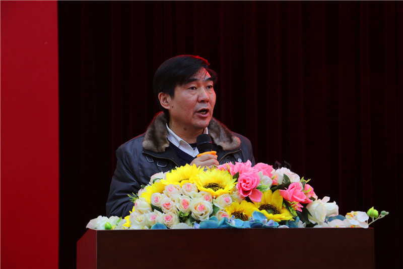 董事长助理刘杰书教授发表讲话,他从国际形势、国家政策到学校发展提出了看法,他表示在新的一年里,学院要不忘初心,牢记使命,砥砺前行,围绕学校培养合格人才为中心,促进学院的发展而奋斗。