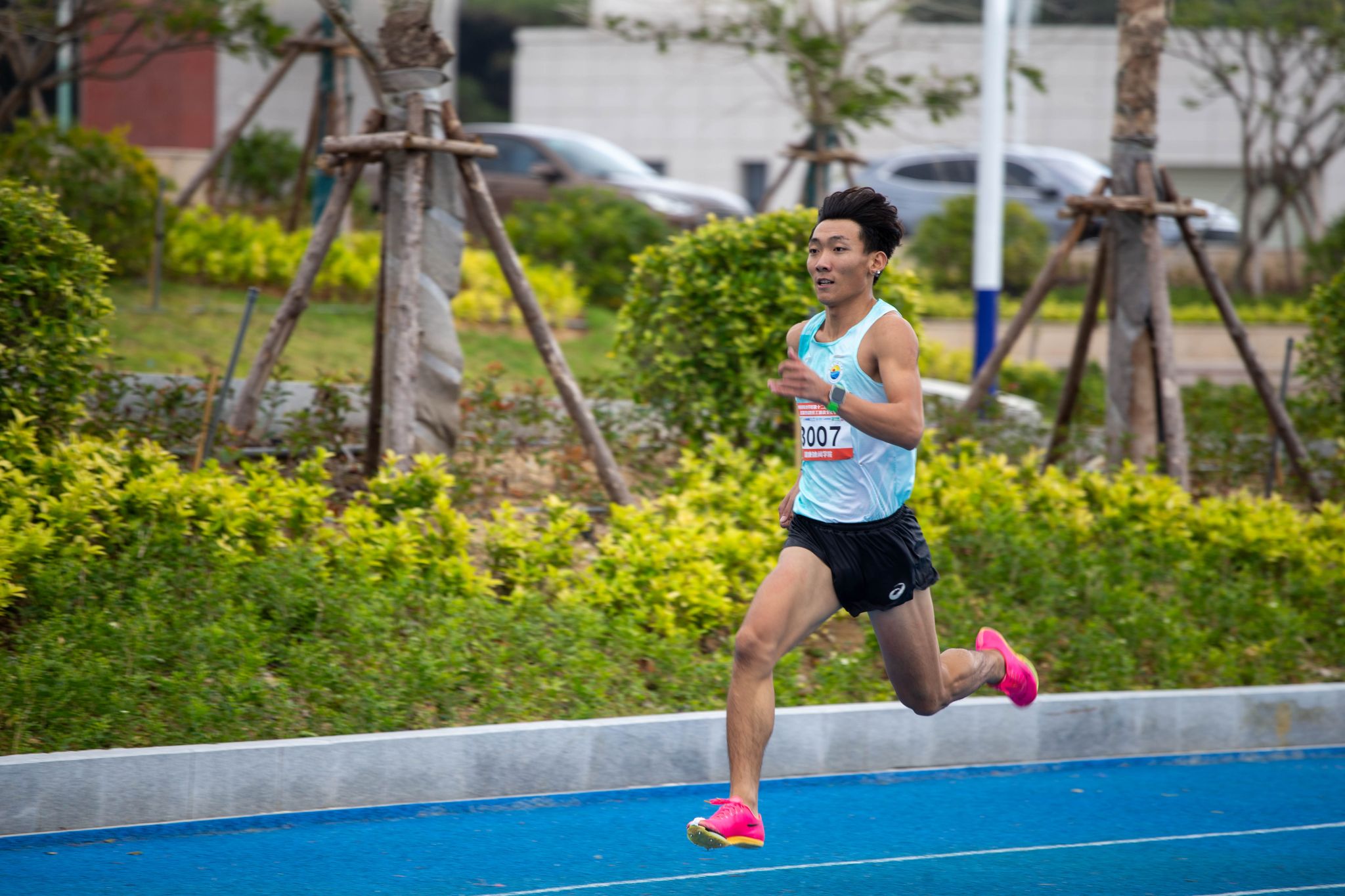 助跑时步频像蓄势的浪头奔涌向前