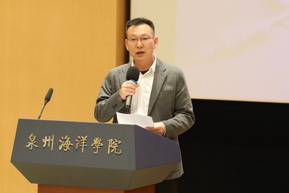 校友企业瀚海(福建)科技有限公司负责人吴华焕作为企业代表发言。他结合自身成长经历,勉励学弟学妹扎实掌握专业知识,拓展兴趣领域,坚守初心投身有价值的事业,并表示将积极提供产业资源与实践机会,助力学弟学妹成长成才。