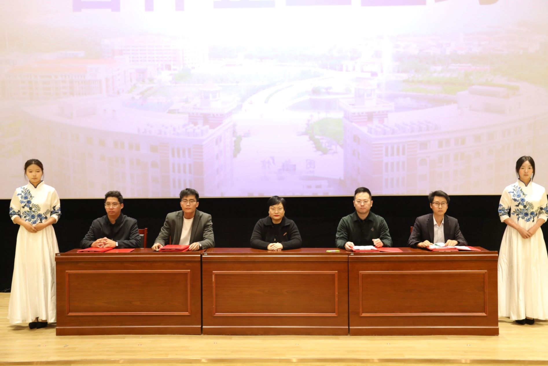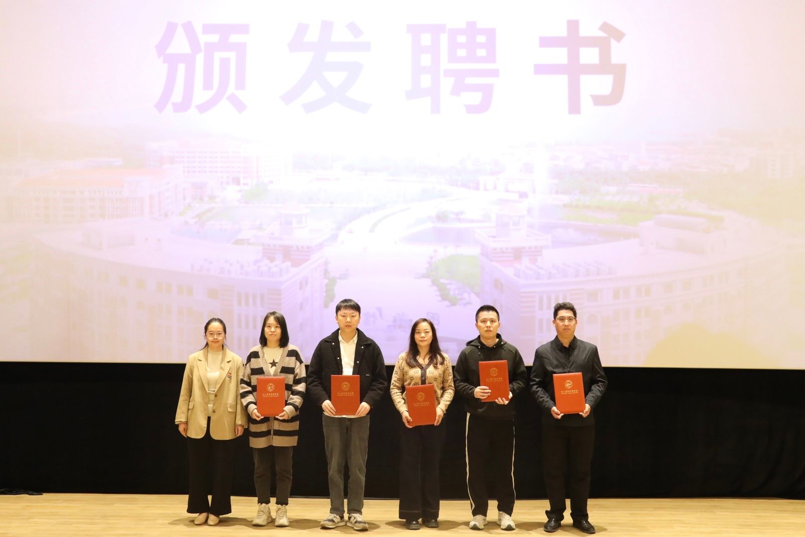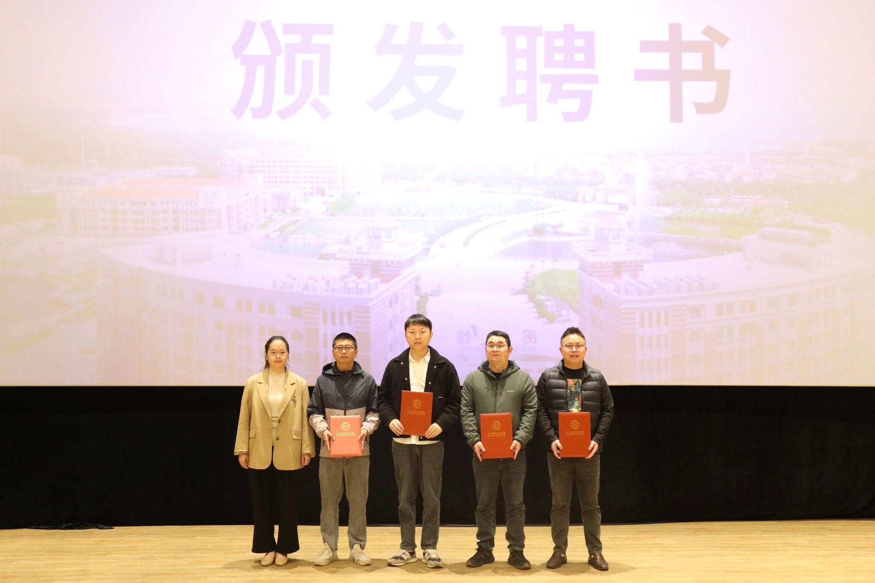 仪式上,人事处副处长沈神英为练长伟、刘子杰等14名企业专家颁发校企双聘导师聘书。