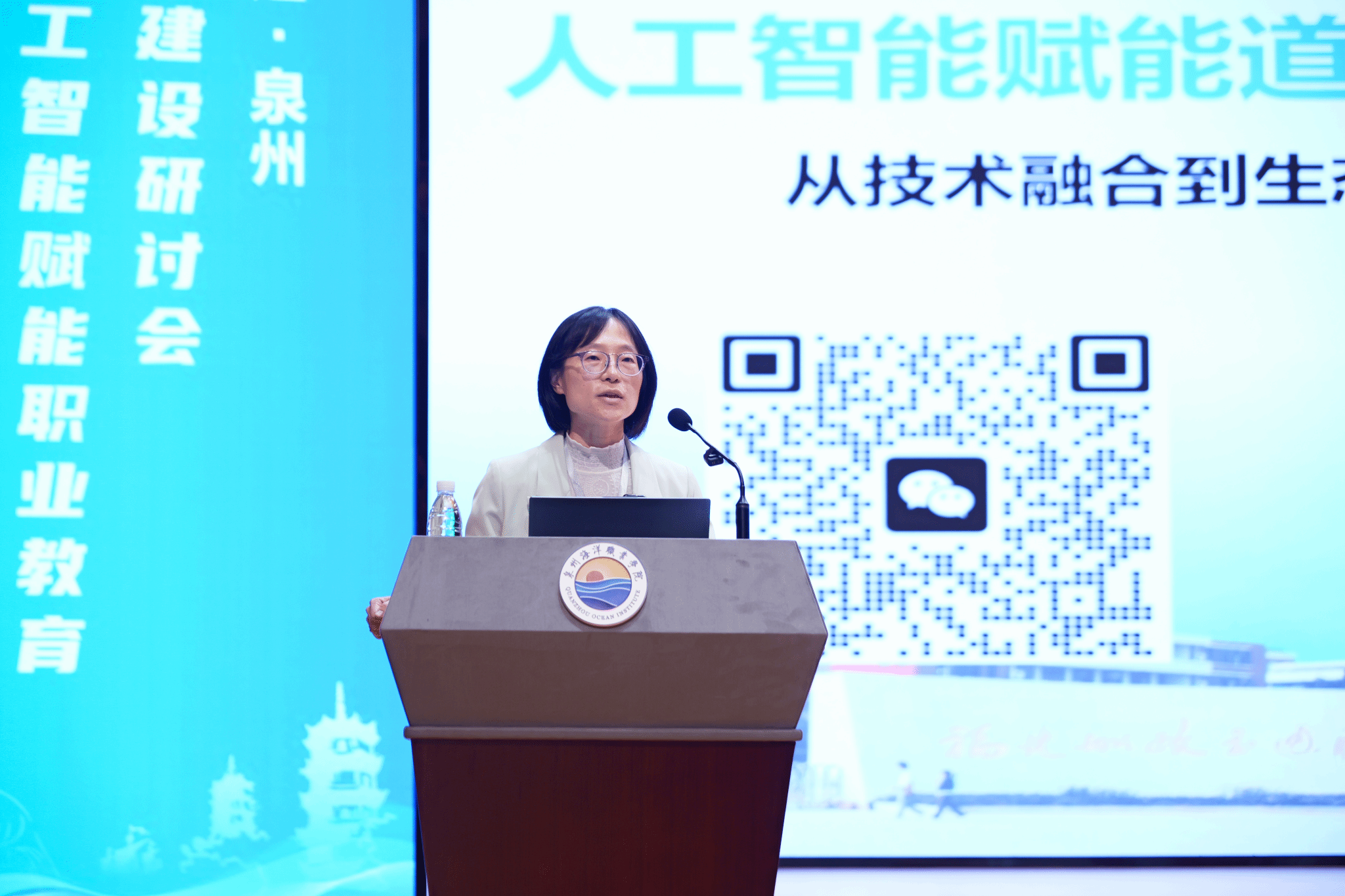 泉州海洋职业学院校长庄伟廉在致辞中向与会嘉宾表示热烈欢迎,并介绍了学校的办学特色与发展动态。作为福建省唯一一所以海洋为特色的民办高职院校,我校始终坚持“海洋特色、技术引领、育训并举”的办学路径,不仅在船员培训等涉海领域稳居全国前列,还积极积极拥抱人工智能浪潮,入选福建省智慧校园试点校,与华为、科大讯飞等头部企业合作,建成泉海华为云开发者创新中心、“一带一路”船员培训AI智慧教室、全国首家船员考试AI智慧考场等一批高能级平台,开设45门AI相关课程,初步构建了“智能平台+应用场景+服务生态”三位一体的智慧教育体系。