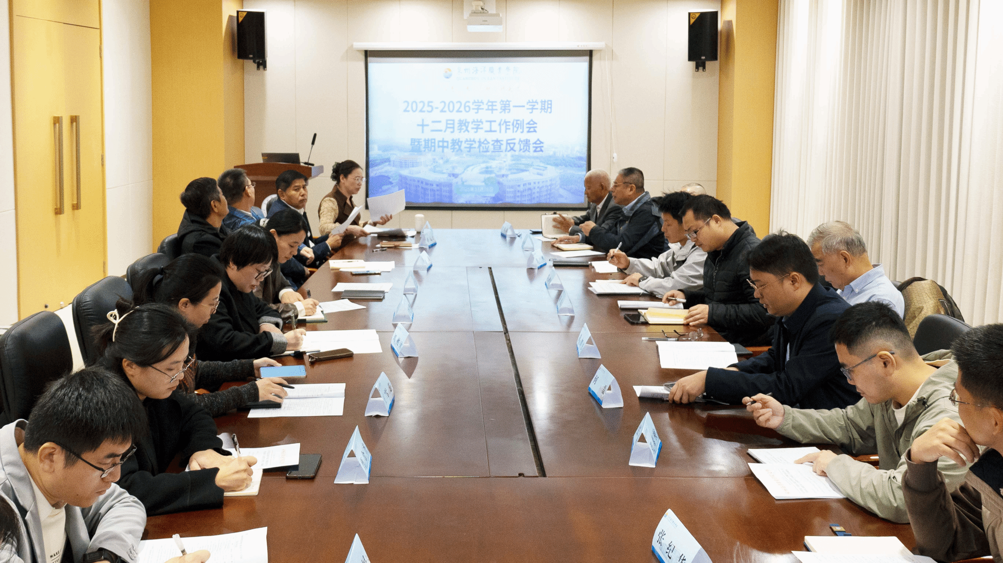 (新闻中心讯 教务处供稿 党委宣传部报道)11月26日上午,学校召开2025-2026学年第一学期十二月教学工作例会暨期中教学检查反馈会。教务处、教育质量控制中心、各二级学院相关负责人参加会议。