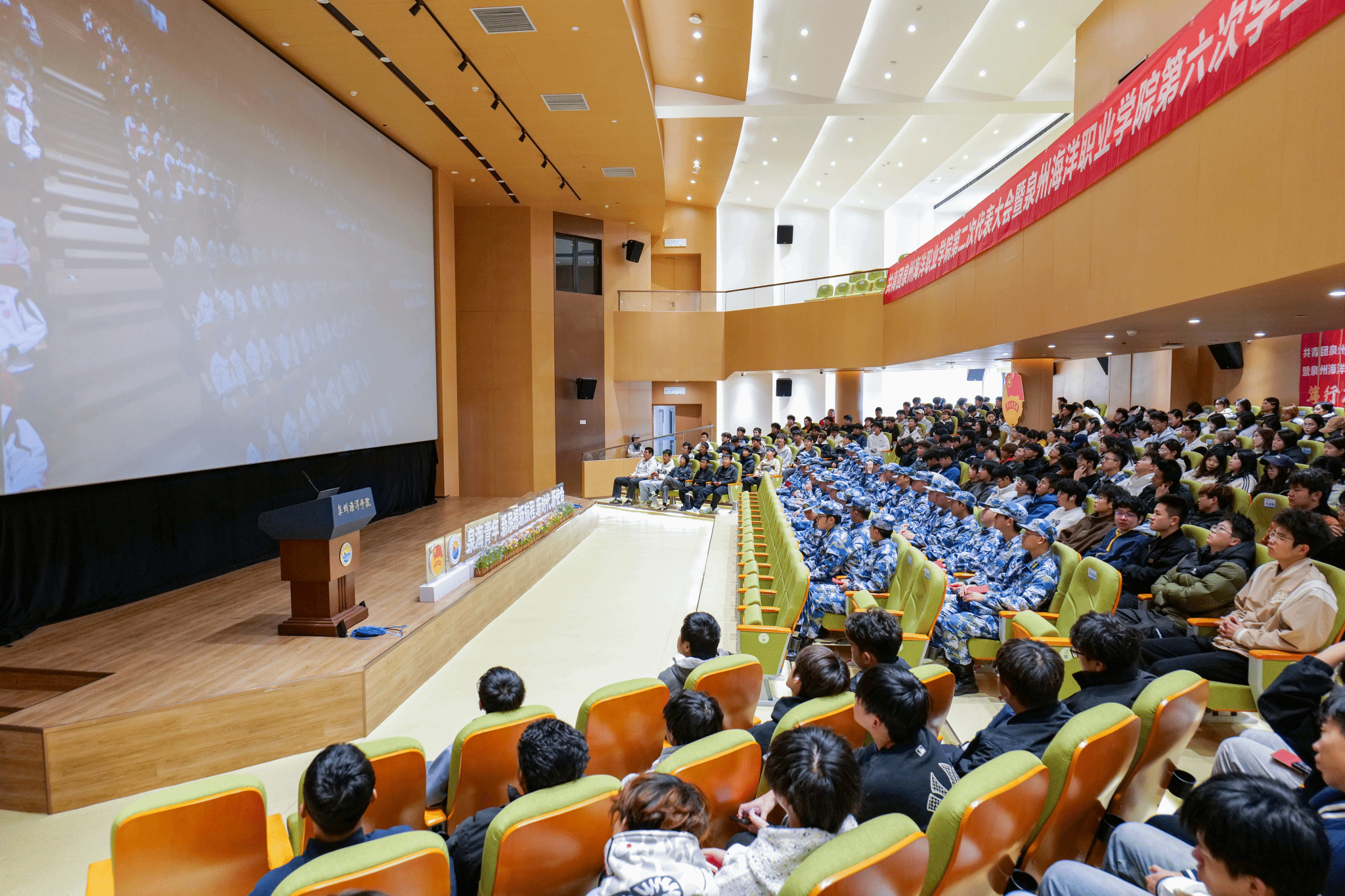 随着国家宪法日教育系统“宪法晨读”直播信号接入,全体学生齐声跟读宪法条文。“中华人民共和国的一切权力属于人民”“中华人民共和国公民在法律面前一律平等”等庄严语句在报告厅内朗朗回响,营造出浓厚的学法氛围。