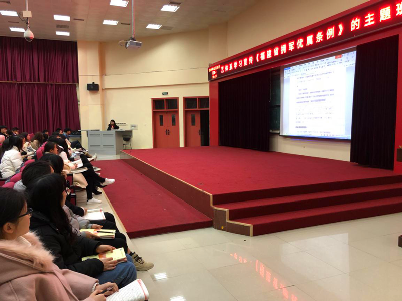 新闻中心讯(黄玲玲供稿 党政办编辑)为积极响应福建省教育厅相关号召,近日我院学生处、各系(部)辅导员通过多种形式组织全院学生学习宣贯《福建省拥军优属条例》。