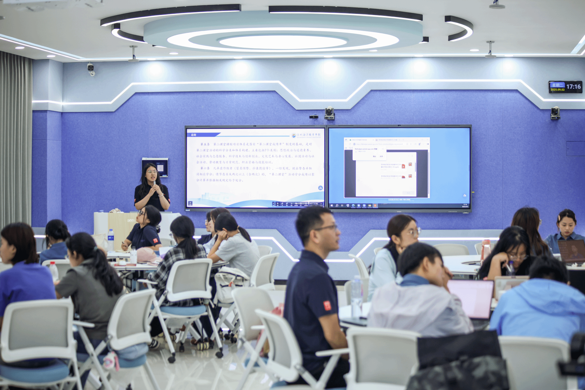 集中培训于9月2日至4日开展,内容涵盖学生工作大会暨开班仪式、资助育人实操、辅导员政治使命与政策法规、职业发展与考核解读、智慧校园系统操作、学生档案与公寓管理、心理危机干预、学籍管理、法治反诈教育、安全急救技能等多个关键模块。学工部统筹优质师资,邀请学工部、教务处、数智化管理处等部门负责人、各辅导员工作室骨干,以及祥芝派出所驻校民警、专业医护人员等校外专家,通过专题讲授、案例研讨、实操演练等形式,为参训人员送上“干货满满”的育人锦囊。