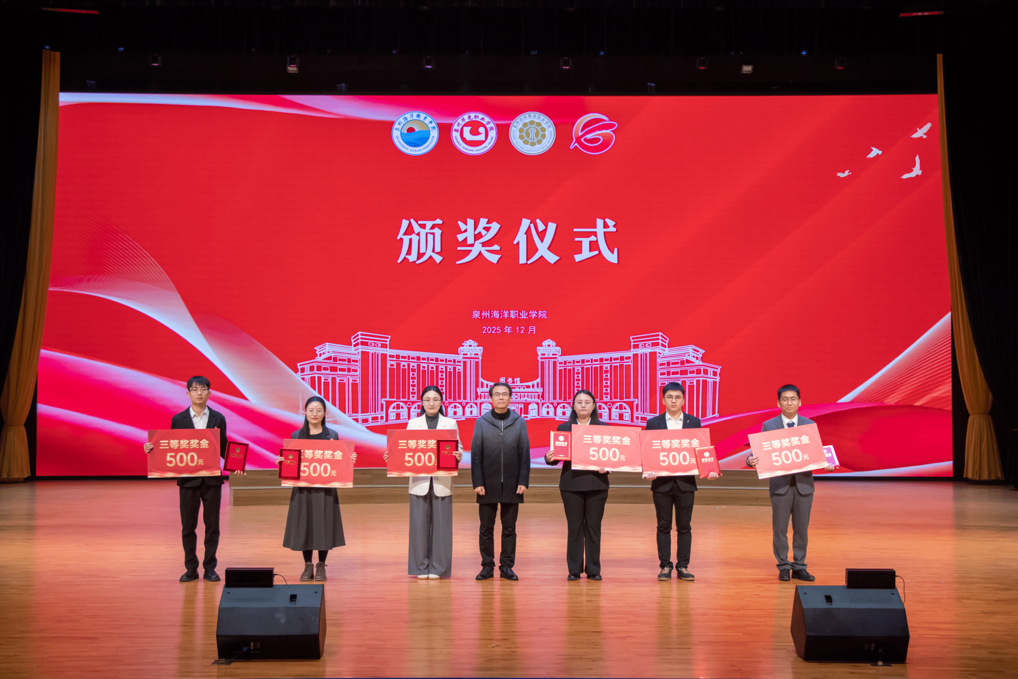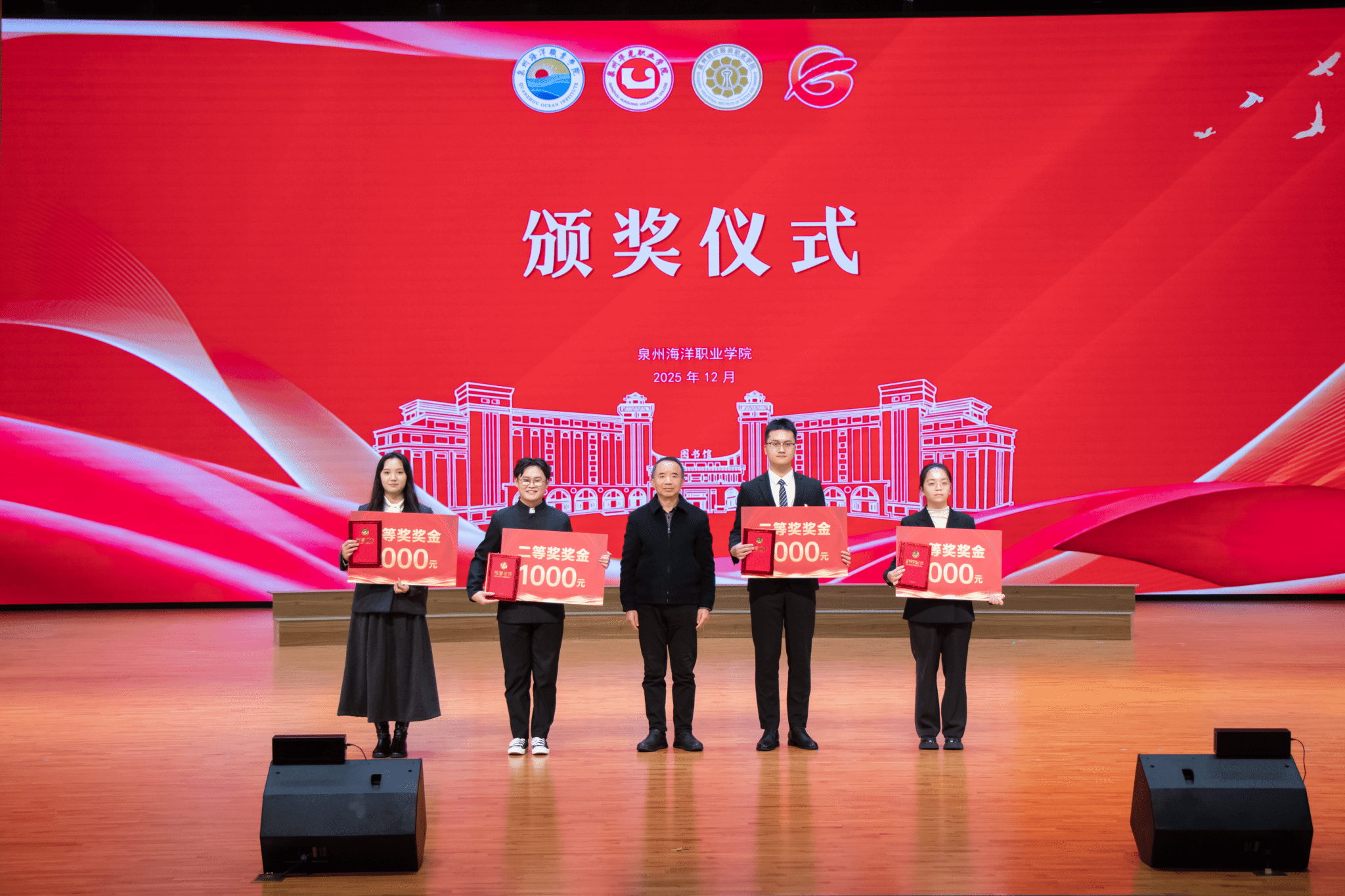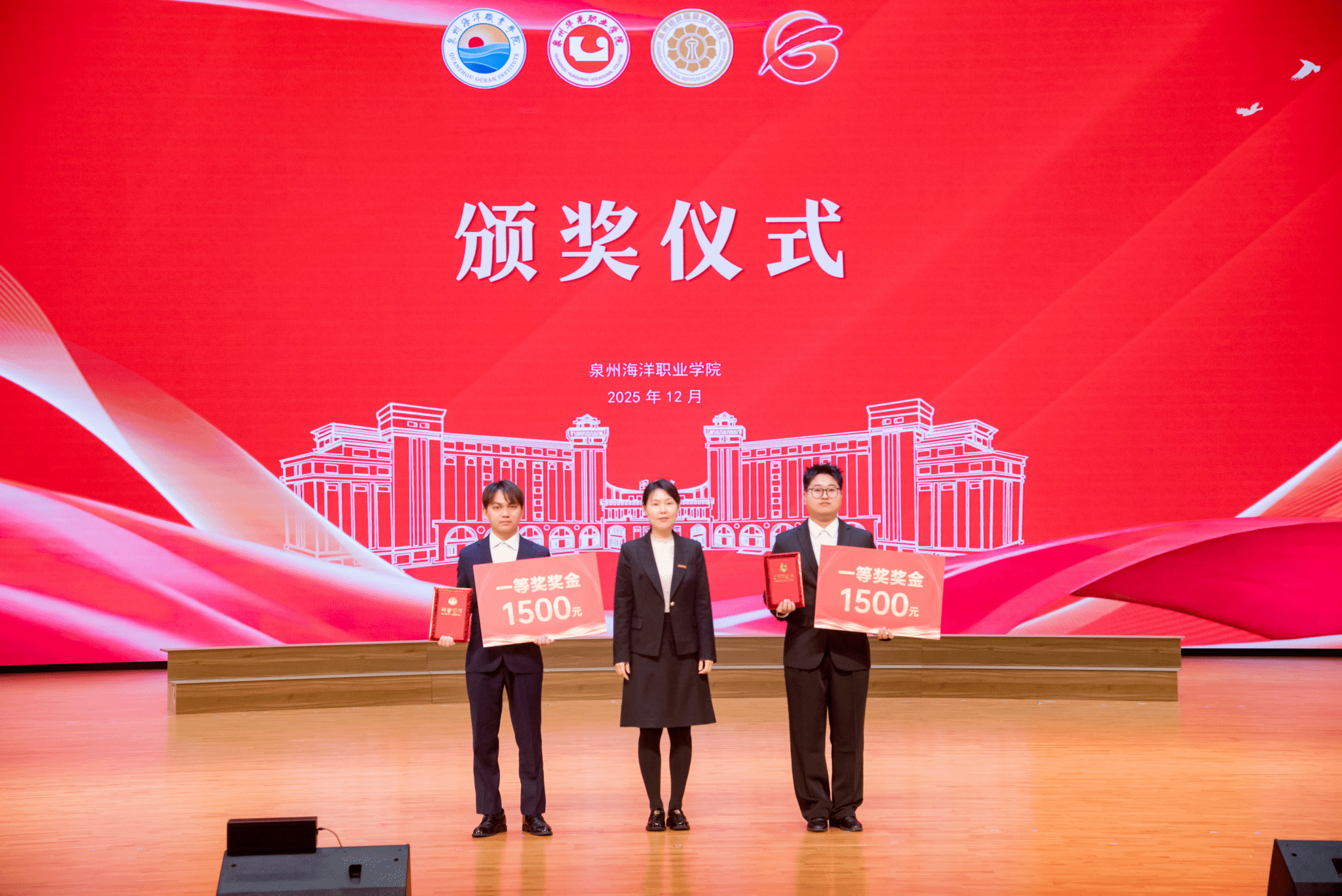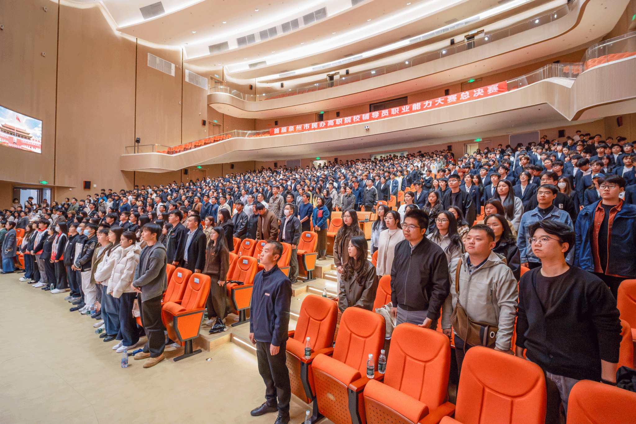 (新闻中心讯 党委学工部供稿 党委宣传部报道)12月19日下午,由泉州海洋职业学院、泉州华光职业学院、泉州纺织服装职业学院、泉州工程职业技术学院联合举办的2025年泉州市辅导员职业能力校际交流赛在我校国际学术交流中心上演巅峰对决。泉州华光职业学院副校长陈雄华,我校领导庄伟廉、黄真真、刘锦辉、钱学东、李明灿、陈东水,各校学生处及相关二级学院负责人出席活动。泉州华光职业学院、泉州纺织服装职业学院、泉州工程职业技术学院、闽南理工学院的学工队伍代表及我校全体辅导员老师、学生代表共800余人到场观摩。