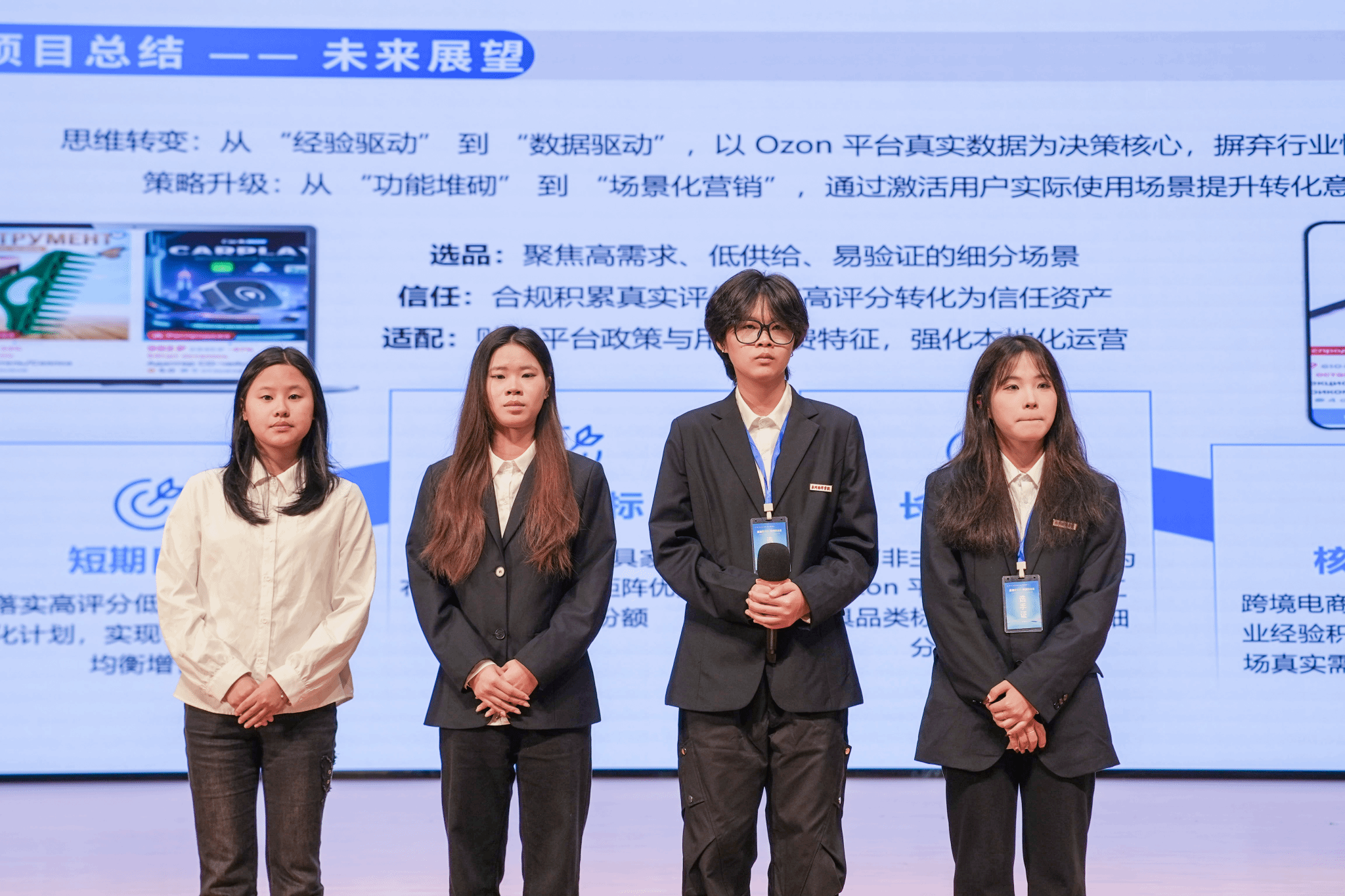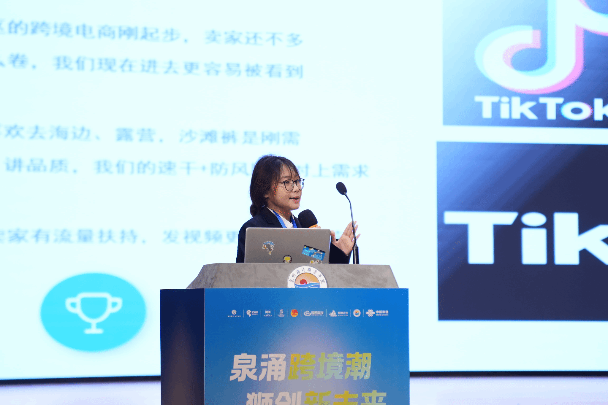 经过激烈角逐,我校学子表现优异,在十个获奖席位中占据六席,展现了扎实的专业功底与创新能力。其中,“泉创跨境先锋”项目荣获二等奖。该项目针对企业“反季节清仓”实际痛点,创新开拓“跨境服饰盲盒”赛道,并借助TikTok日本站开展精准内容营销,其创意令人印象深刻。“寰球智野”项目获得三等奖,凭借贴合市场的选品策略、默契的团队协作以及生动的现场场景展演,赢得了评委的一致认可。此外,我校另有四支队伍斩获优秀奖。