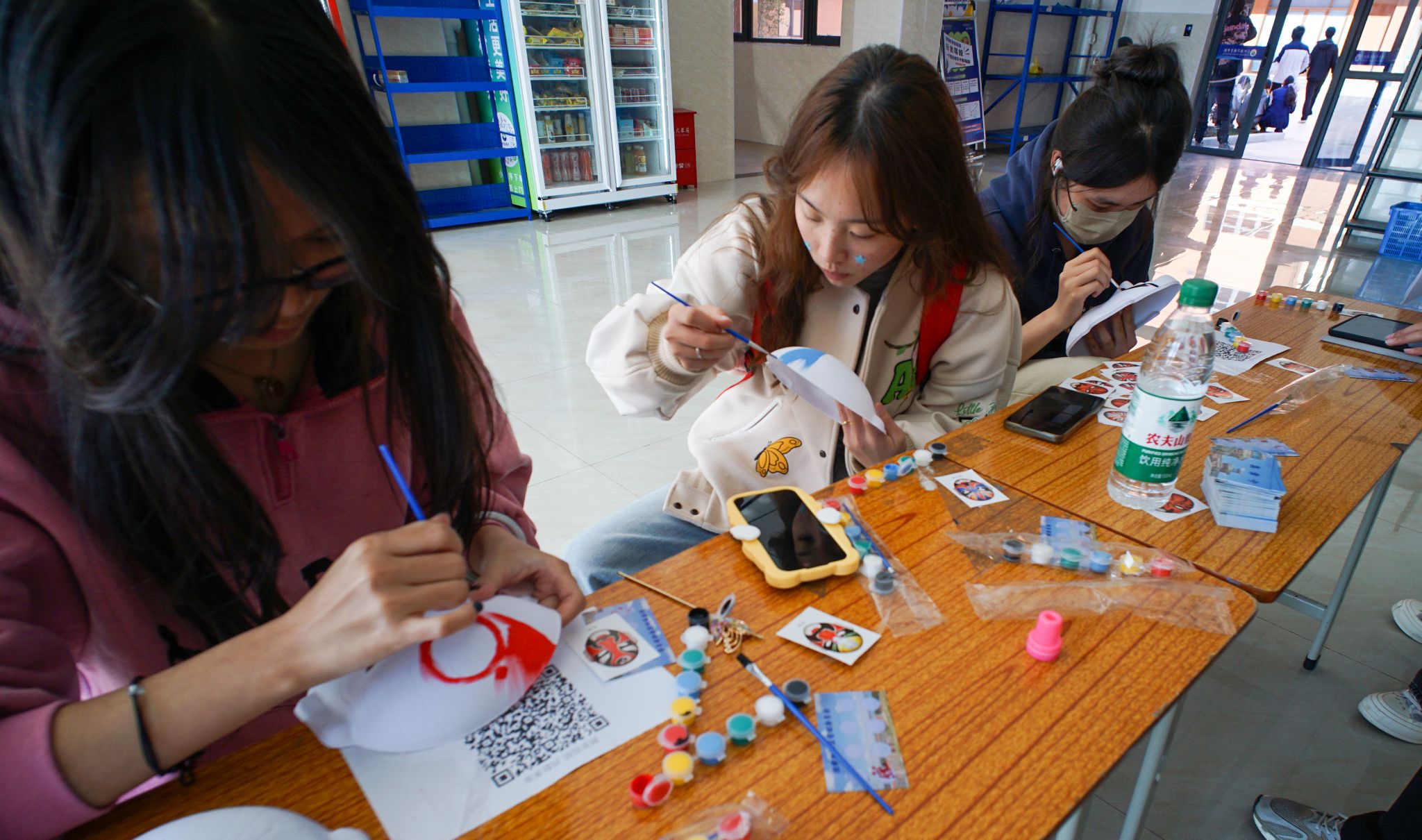 巧手造物、年味拉满!位于海澄驿站的手作体验区,以传统文化为底色,融合创意与巧思,吸引众多学生驻足参与。在这里,笔墨纸砚、彩线螺钿都变成了灵感的载体。同学们静心投入,剪出红火窗花,勾勒生动脸谱,巧制清香香囊,书写祝福春联——每一件手作,都蕴含着大家对新年的真挚期盼。