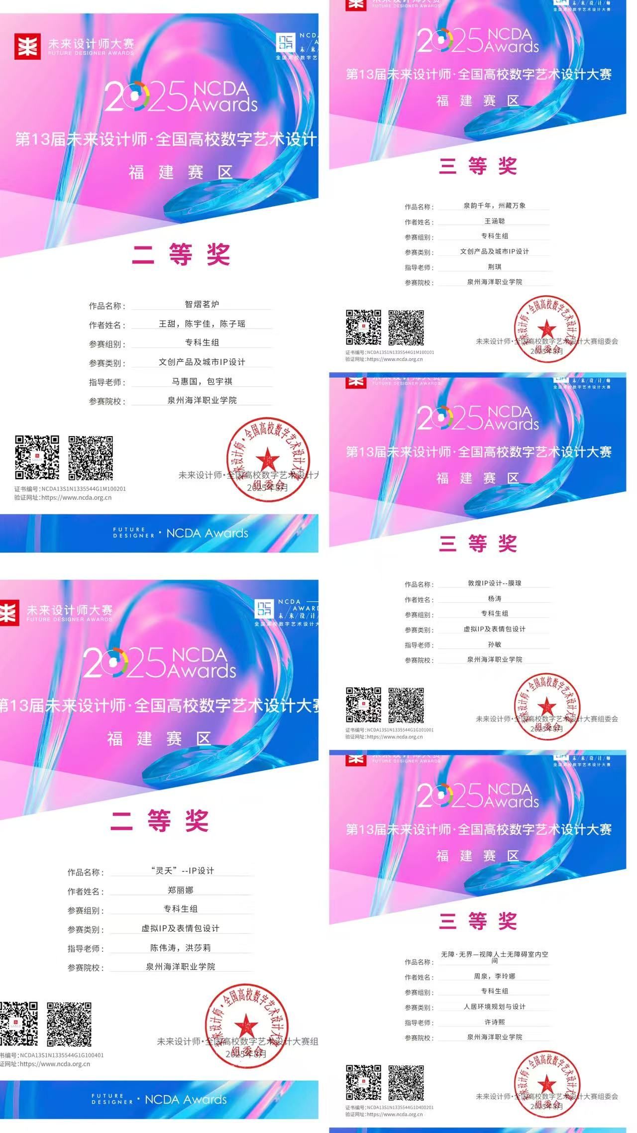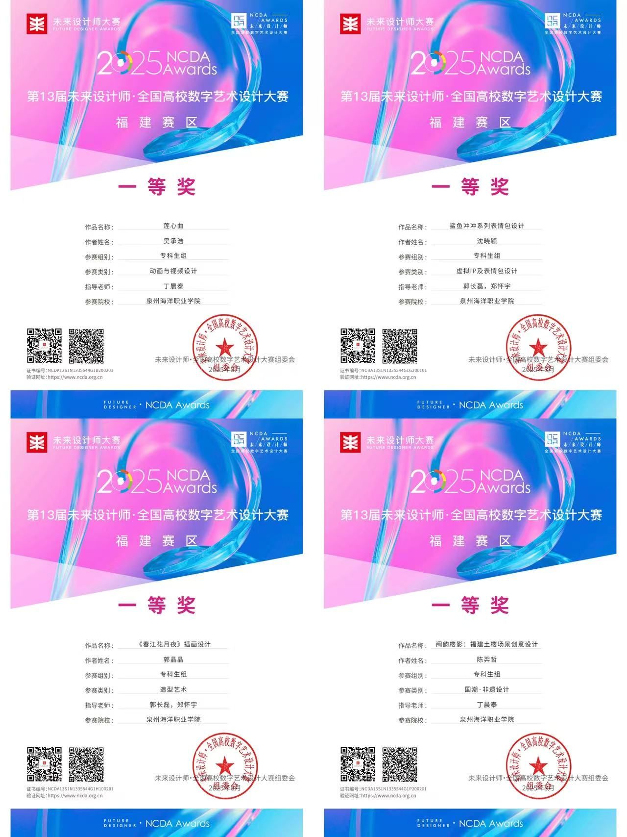 (新闻中心讯 信息工程学院供稿 党委宣传部报道)近日,2025年第13届未来设计师·全国高校数字艺术设计大赛(NCDA)评审结果正式揭晓。信息工程学院师生表现突出,共斩获国家级二等奖2项,省级一等奖5项、二等奖2项、三等奖3项,并有3位教师获评国家级优秀指导教师。