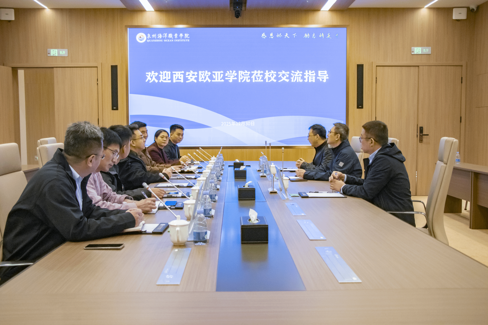 会上,我校董事蔡永鸿详细介绍了学校的办学定位、发展历程与职教特色。他表示,西安欧亚学院在民办高校治理现代化、后勤服务创新等方面成果斐然,此次交流为我校提供了宝贵的学习机会,期待双方能建立长效互鉴机制,共探发展新路。