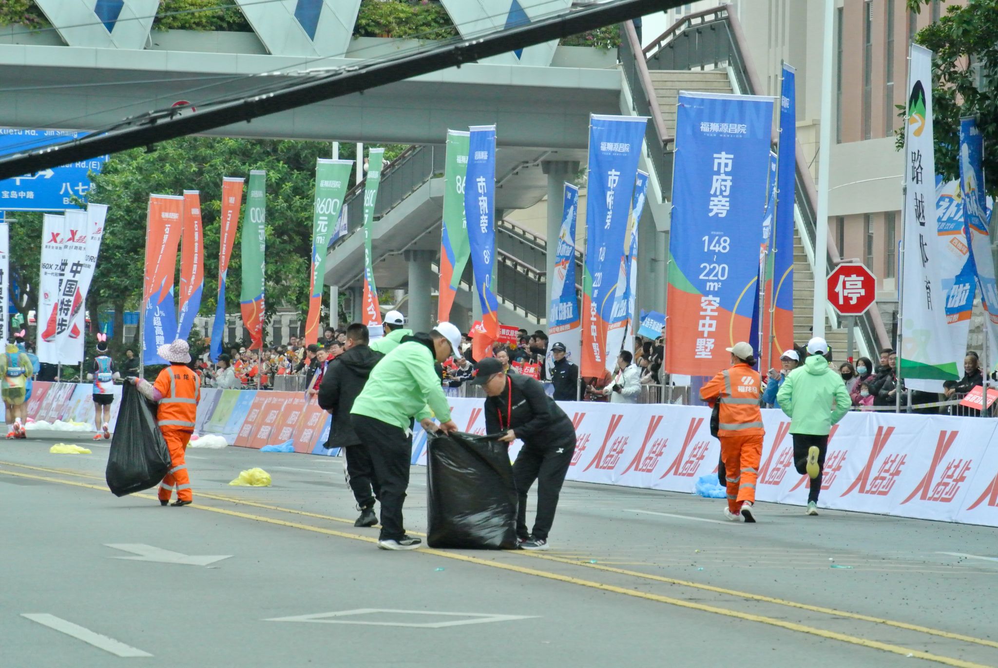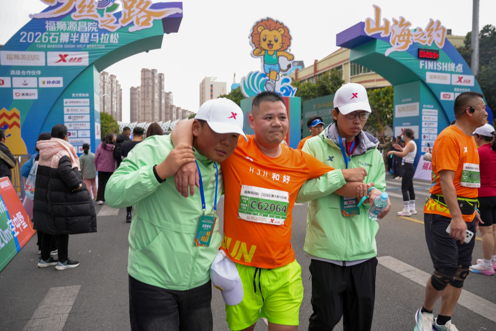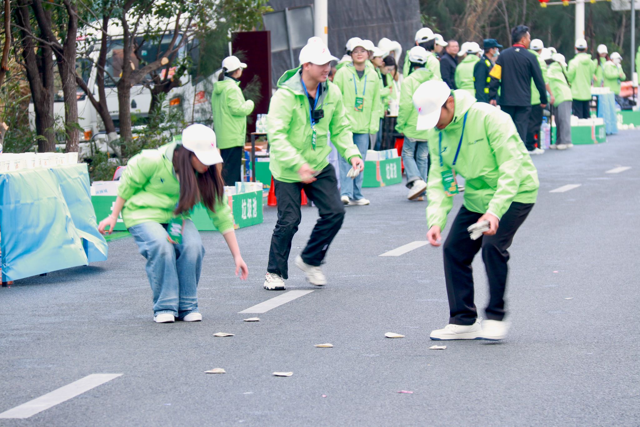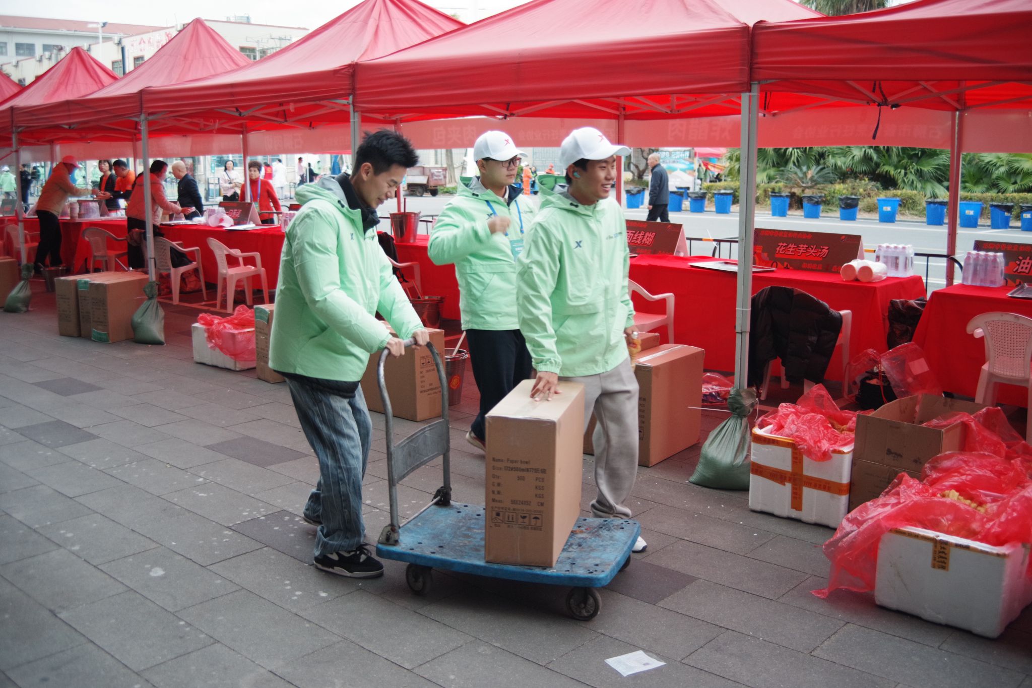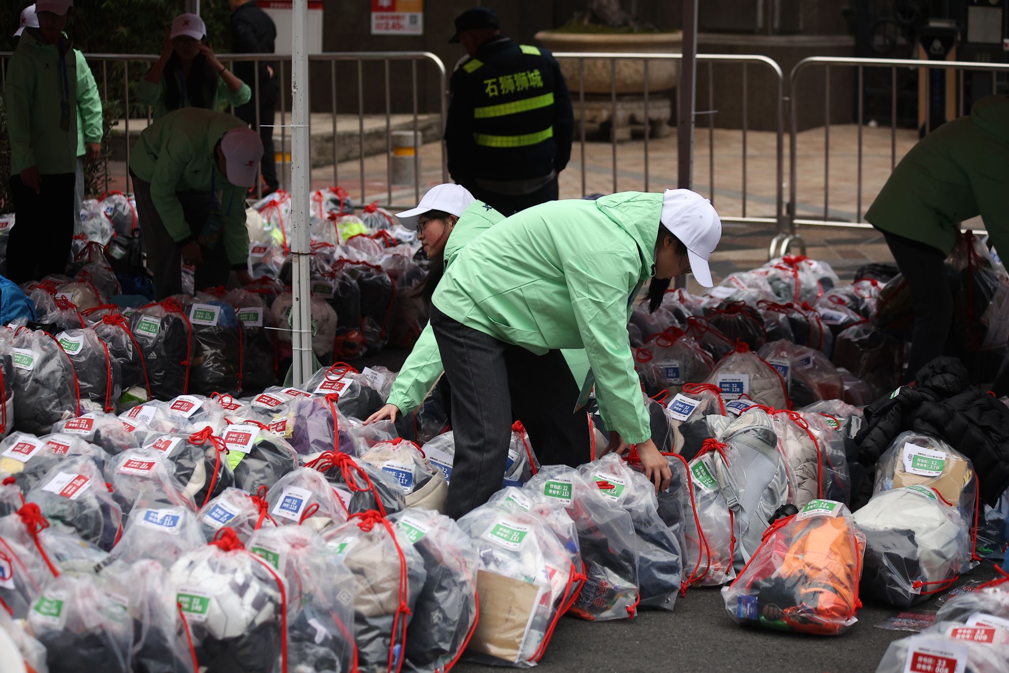 从起点到终点,安检区、存衣区、饮水站、检录口、补给站、医疗点等各个岗位,随处可见他们忙碌的身影。补给站的志愿者提前将饮用水、食物等摆放整齐,及时为跑者递上补给,并送上“加油,坚持住!”的真诚鼓励。从晨光熹微到暖阳高照,他们始终坚守岗位,成为跑者突破自我的“精神加油站”。