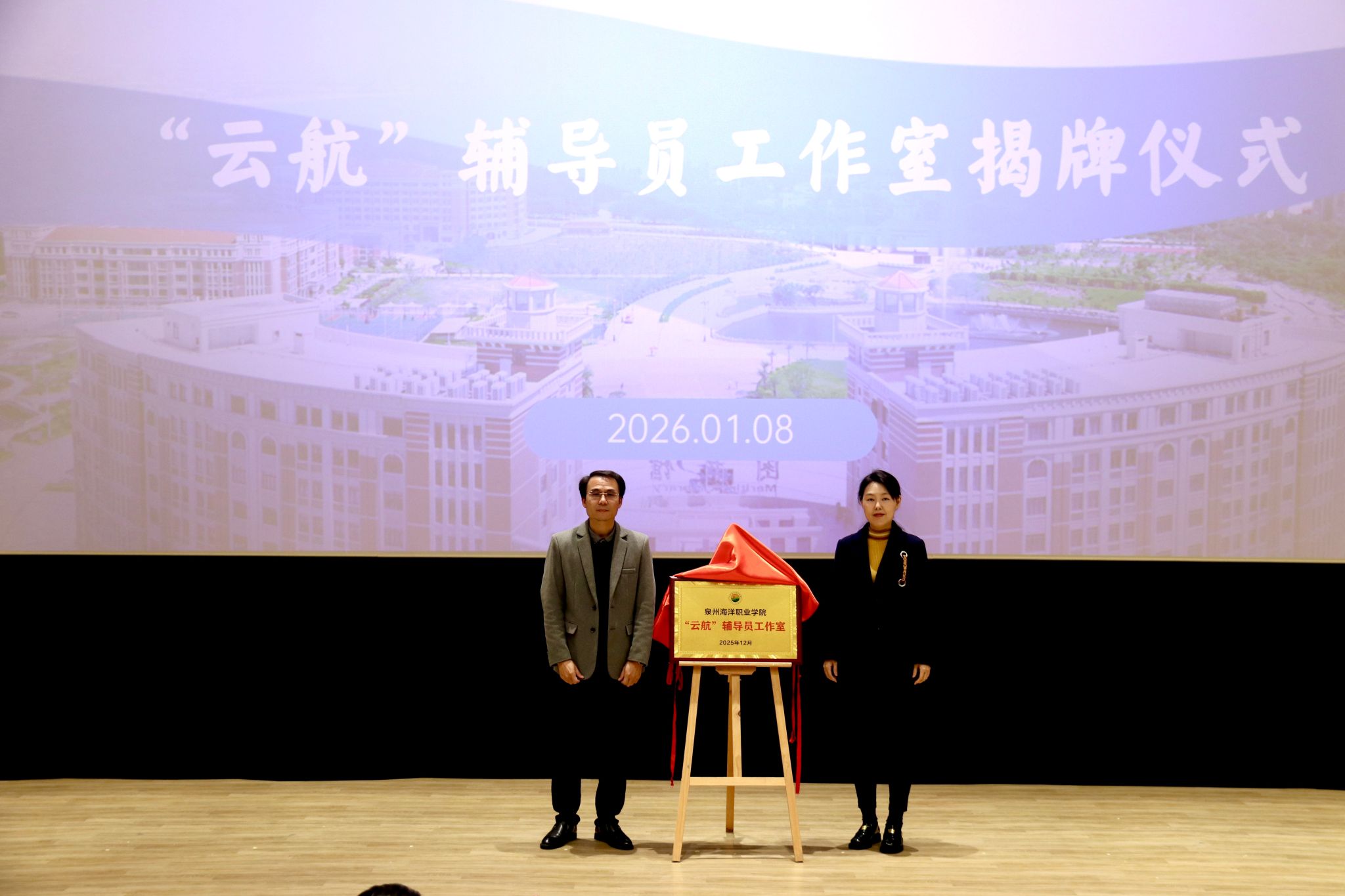 在与会人员的共同见证下,党委书记黄真真与校党委副书记、副校长李明灿共同为“云航”辅导员工作室揭牌;