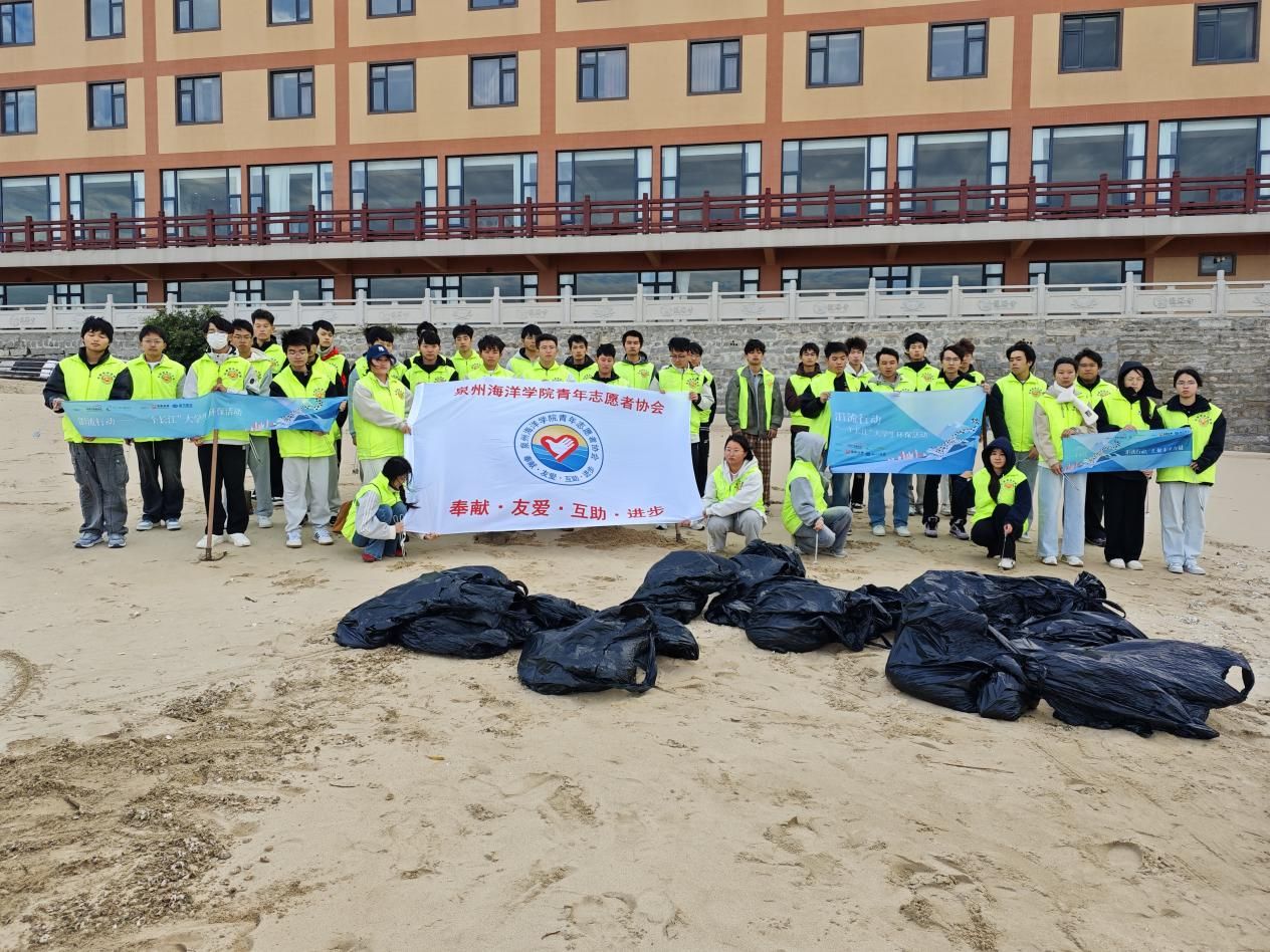 “蓝海春潮”志愿服务队长期开展海洋环保、社区服务等公益活动。项目负责人林伟亮同学分享道:“在持续参与净滩行动的过程中,我们一次次看到塑料瓶、渔网、微塑料反复出现,这让我们更真切地体会到人类生活与海洋环境的密切关联。行动或许微小,但持续的行动本身就是一种改变。”
