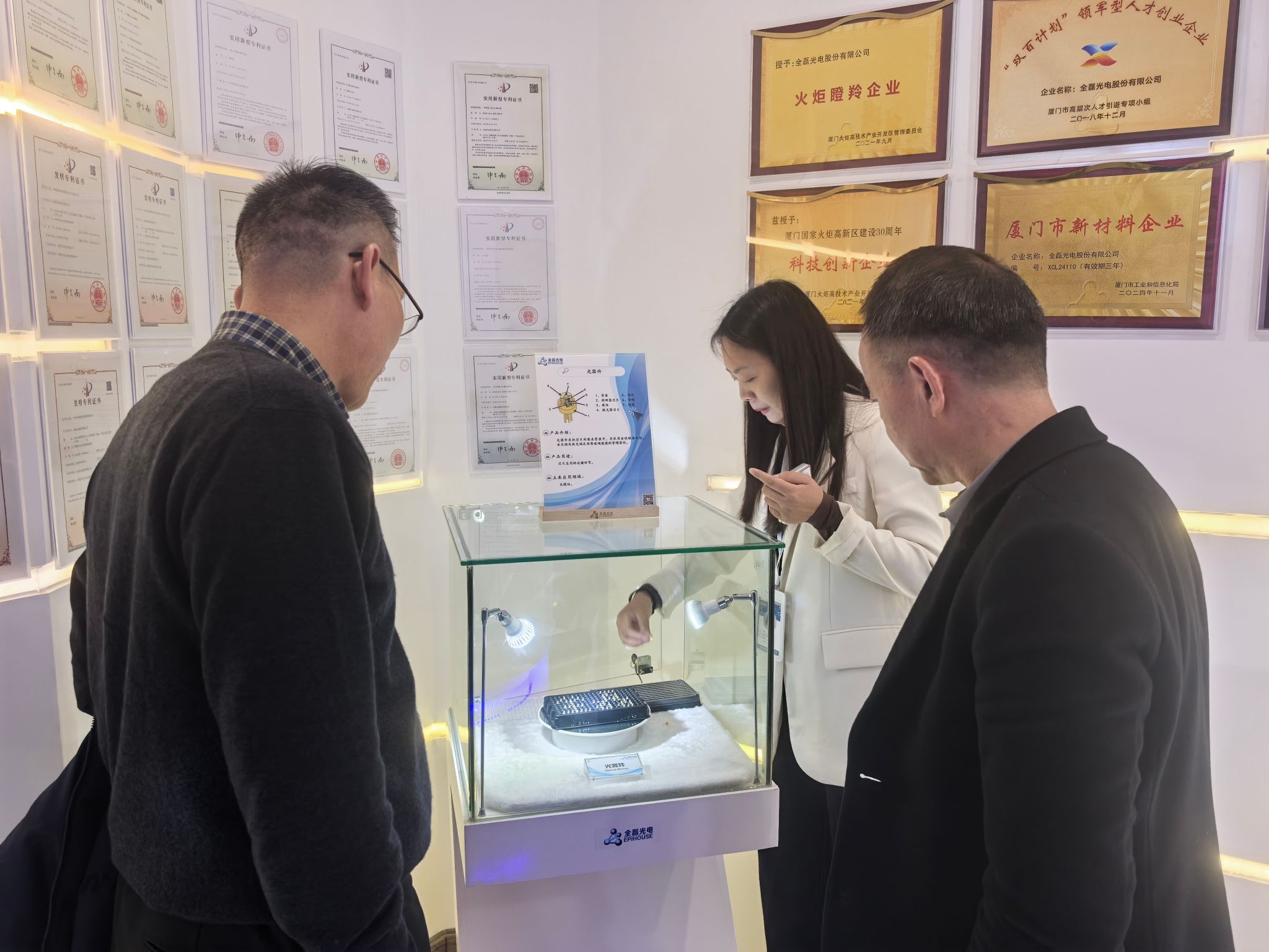 在国家级高新技术企业、专精特新“小巨人”企业全磊光电科技股份有限公司走访过程中,企业人力资源经理叶丽贞详细介绍了企业的核心技术、生产流程及人才缺口,重点表达了对电子信息工程技术等专业学生的迫切需求,并说明了岗位条件、员工职业发展及福利保障措施。