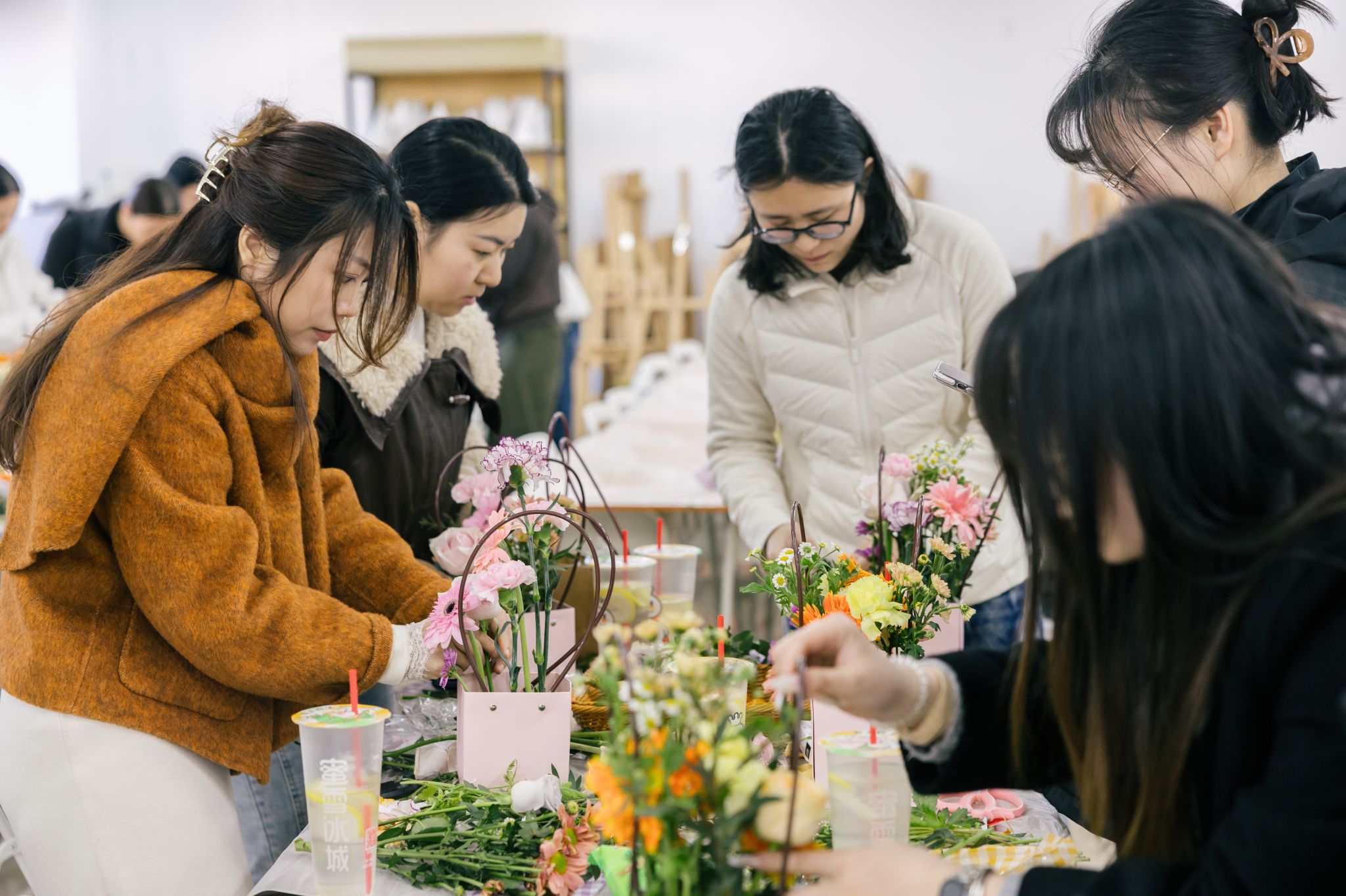 本次活动的核心环节——传统插花艺术体验,得到了女教职工们的热烈响应。在花香馥郁的室内,校内花艺老师柯晓暄进行了细致的现场示范与指导,从花材特性、色彩搭配到造型设计,一步步引导大家领略插花艺术的魅力。女教职工们化身巧手花匠,充分发挥想象力与创造力,全身心投入创作,用心修剪、搭配,将一朵朵鲜花变成了一件件独具匠心的花艺作品。现场欢声笑语,大家在感受美、创造美的过程中,愉悦了心情,陶冶了情操,也促进了彼此间的交流。