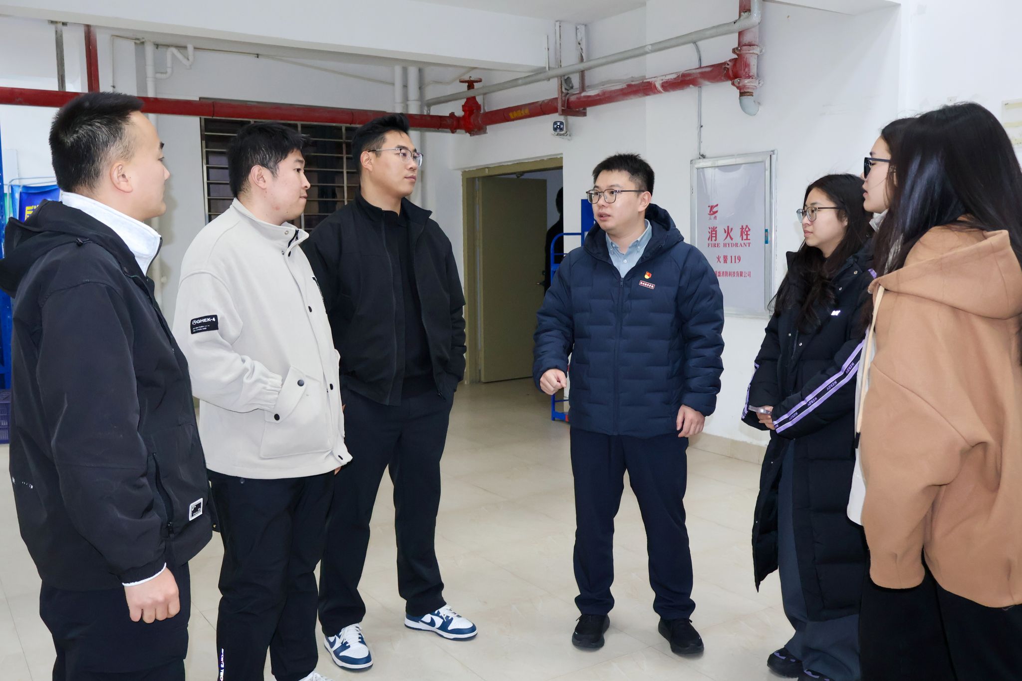 座谈会刚结束,高巍巍就带着这份思考,和辅导员一起走进了学生宿舍。问生活、聊困惑、谈规划……在交流中,高巍巍一行结合学校华为人工智能实训中心、海洋工程装备智能实训平台等优质实践资源,为学生系统讲解专业发展前景,鼓励学生立足“海洋蓝”根基,深耕“科技蓝”内核,以“天空蓝”格局规划学业与人生,积极参与校企合作项目、海洋智能技术实践等活动,推动专业所学与海洋产业需求同频共振、深度融合。