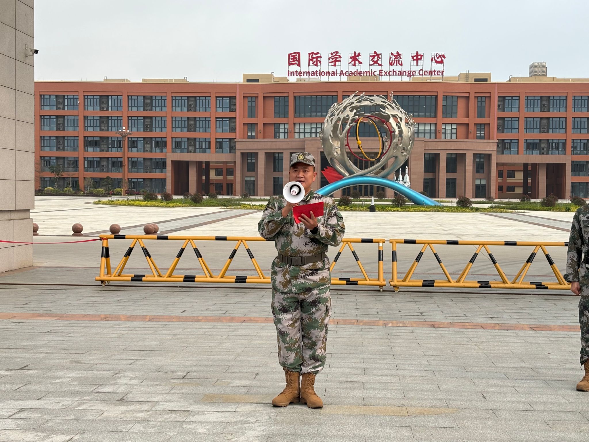 当天清晨,学校南广场上三声短促的呐喊划破宁静。身着迷彩的方阵整齐列队,国防教育学院全体师生整装待发。动员环节,邵院长、苏良城书记先后发言,围绕党建引领铸魂育人主线,立足国防教育与人才培养定位,勉励学生以拉练为契机,强化使命担当、锤炼过硬作风。随后,钱学东副校长下达出发口令,队伍有序开拔。