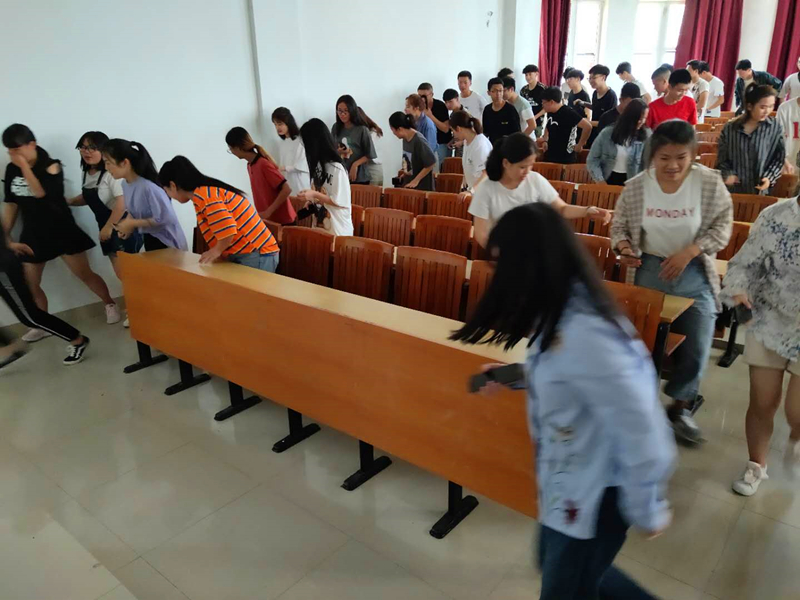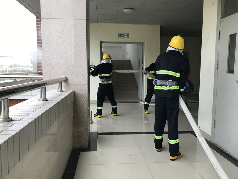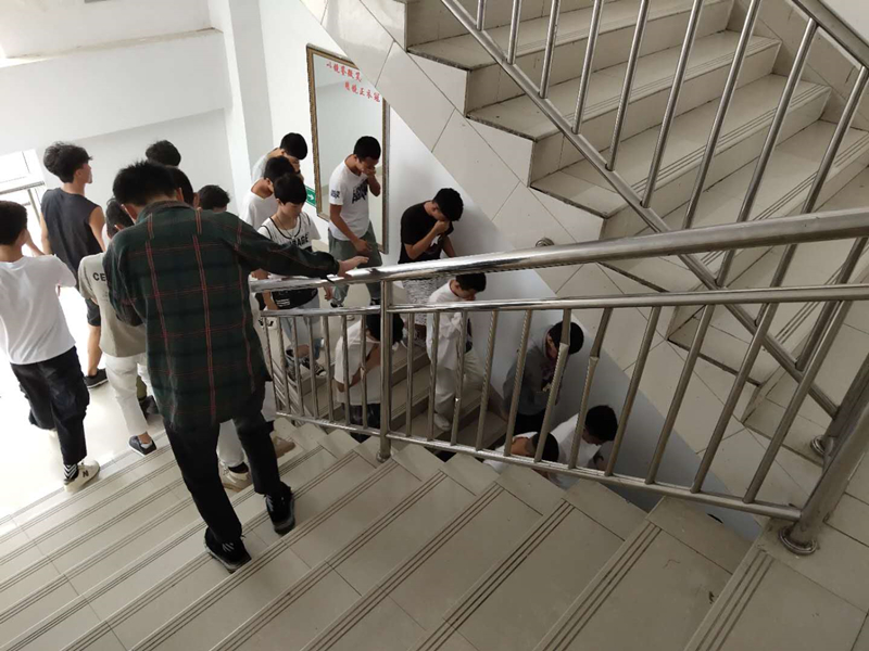 演练现场模拟2号教学楼发生火情,火势蔓延至2200大教室,并有进一步扩大的趋势。正在上课的学生在老师的有序指挥下,准确选择逃生通道及应对方法,快速从消防通道撤离至空旷地带。与此同时,校内微型消防站的队员在接到火灾报警后,严格依照操作规范和流程,第一时间穿戴好装备赶赴现场,扑灭火灾。并对学生进行安抚和隔离,杜绝进一步受伤的可能。