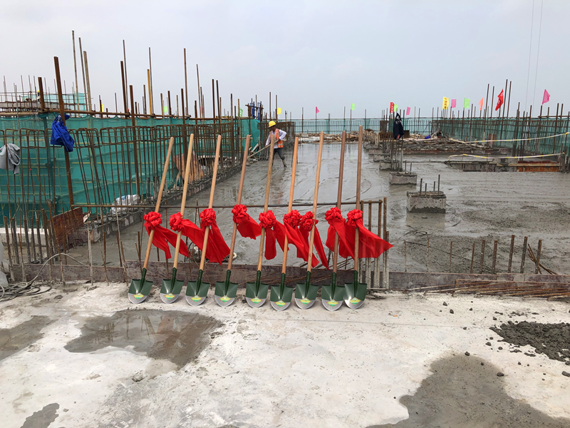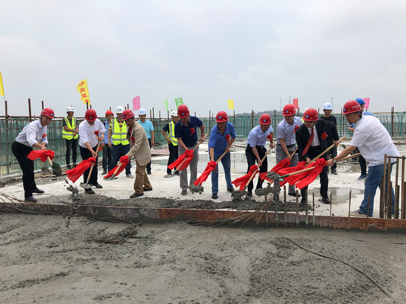 新闻中心讯(党政办报道)2019年4月30日上午,我校举行举行二期工程8号和9号学生宿舍楼项目封顶仪式。本次参加封顶浇筑仪式的有我校蔡天真董事长、柏定国校长、吴广华副校长、中建筑港集团公司程绍祥副总经理、中建筑港集团公司第六分公司王晓伟总经理、孙秀阳总会计师等。伴随着最后一斗混凝土的浇筑到位,我校校园二期工程迎来了具有历史意义的特殊时刻,现场礼炮齐鸣,彩旗飘扬,大楼悬挂着“封顶大吉”的条幅,洋溢出喜庆的氛围。