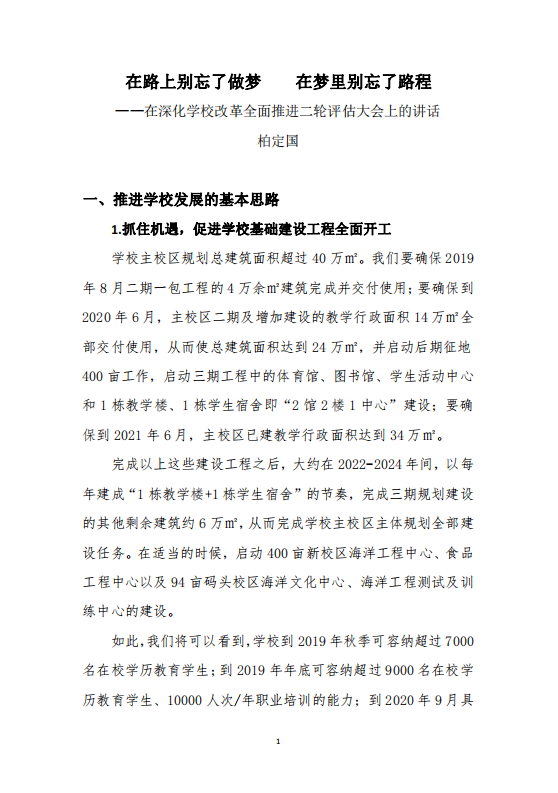 柏定国校长在深化学校改革全面推进二轮评估大会上的讲话
