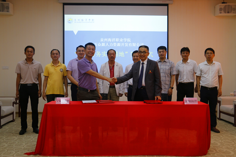 柏定国校长代表学校与宁夏万众源人力资源开发有限公司签订合作协议。随后,黄水木市长、蔡天真董事长、柏定国校长和王金钟先生共同为闽宁劳务实训基地揭牌。