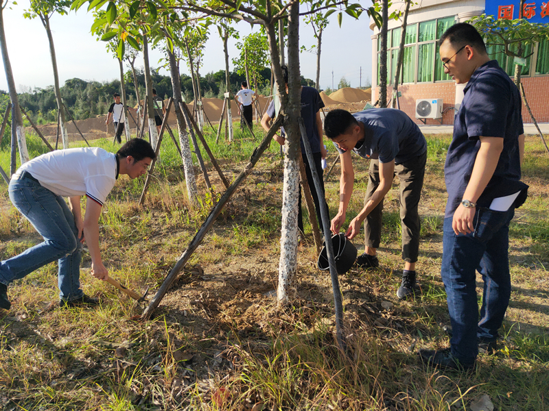 会后,各党组织分头组织党员开展校园树木养护活动。