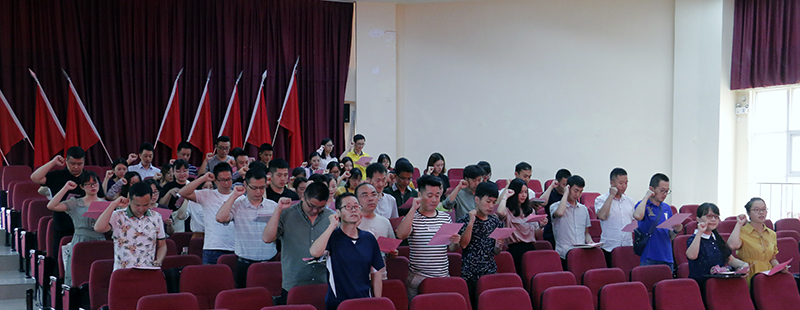 最后培训仪式在组织人事处官磊处长的带领下,全体新入职教师进行庄严的新员工师德师风宣誓。