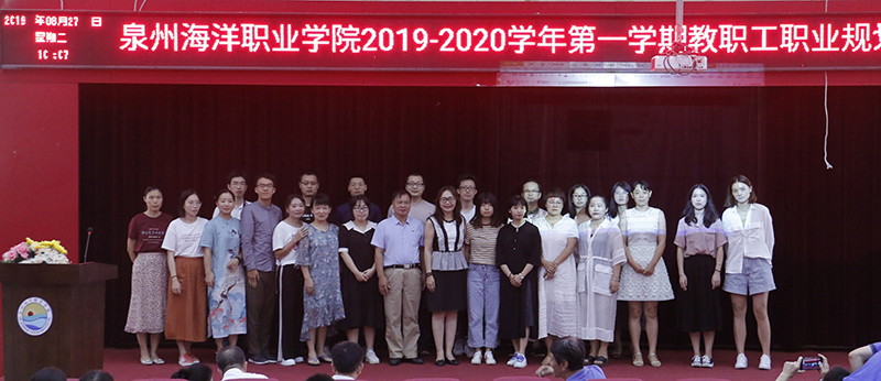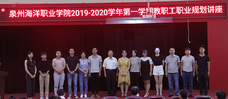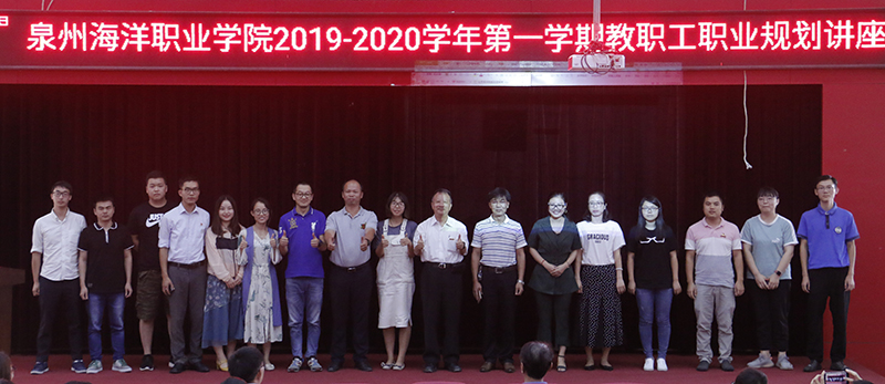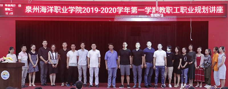 新闻中心讯(廖丽红供稿 党政办编辑)2019年8月27 日,我校举办泉州海洋职业学院2019—2020学年第一学期教职工职业规划讲座,由柏定国校长为全体教职工作职业生涯规划辅导,校领导及全体教职工参加本次讲座。本次讲座由组织人事处官磊处长主持。