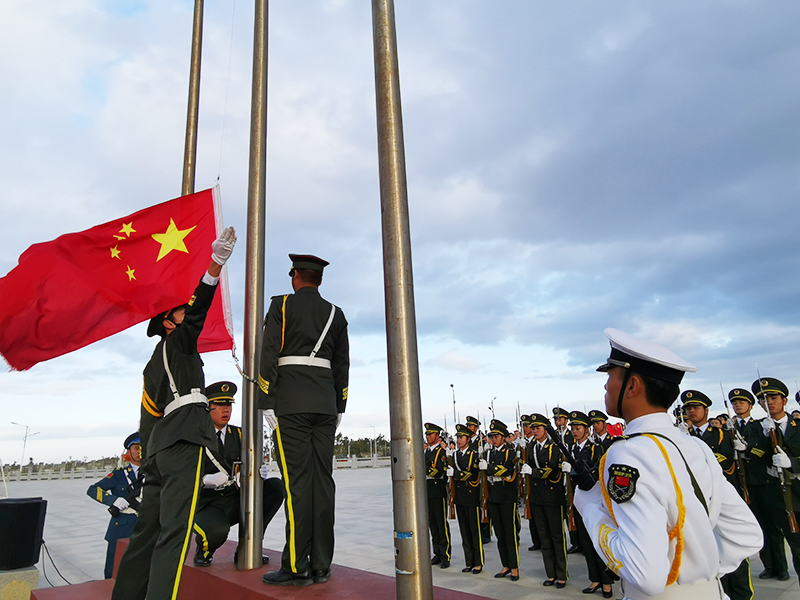 在雄壮的《中华人民共和国国歌》歌声中,鲜艳的五星红旗冉冉升起。全体师生面向国旗整齐排列,行注目礼,场面庄严隆重,表达了大家最崇高的敬意。
