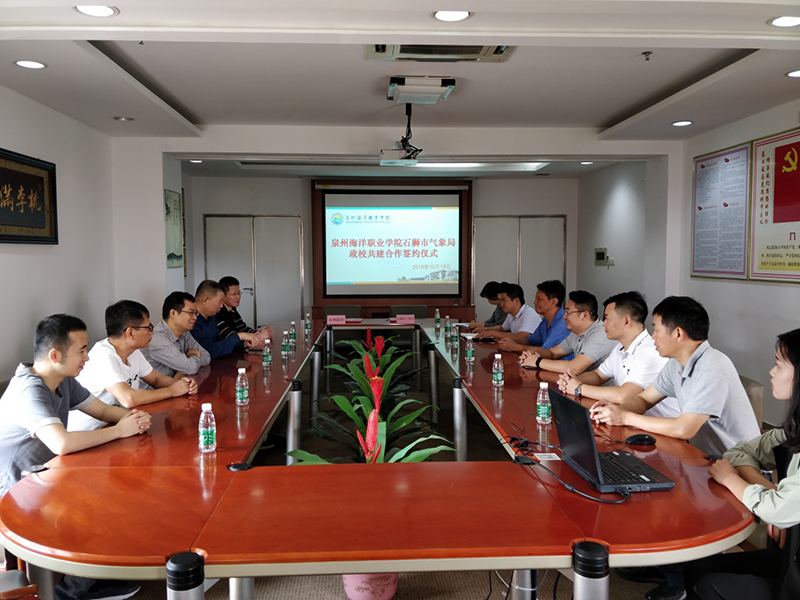 新闻中心讯(董灿荣供稿 党政办编辑)近日,我校与石狮气象局合作共建签约仪式在校大会议室举行。石狮市气象局杨建东局长、饶灶鑫副局长,气象台陈志泉台长等一行莅临我校参加签约仪式。我校吴广华副校长、张超副校长,航海物流学院陈东水院长、教务处郑玉花副处长及相关领导和老师共同出席了签约仪式。