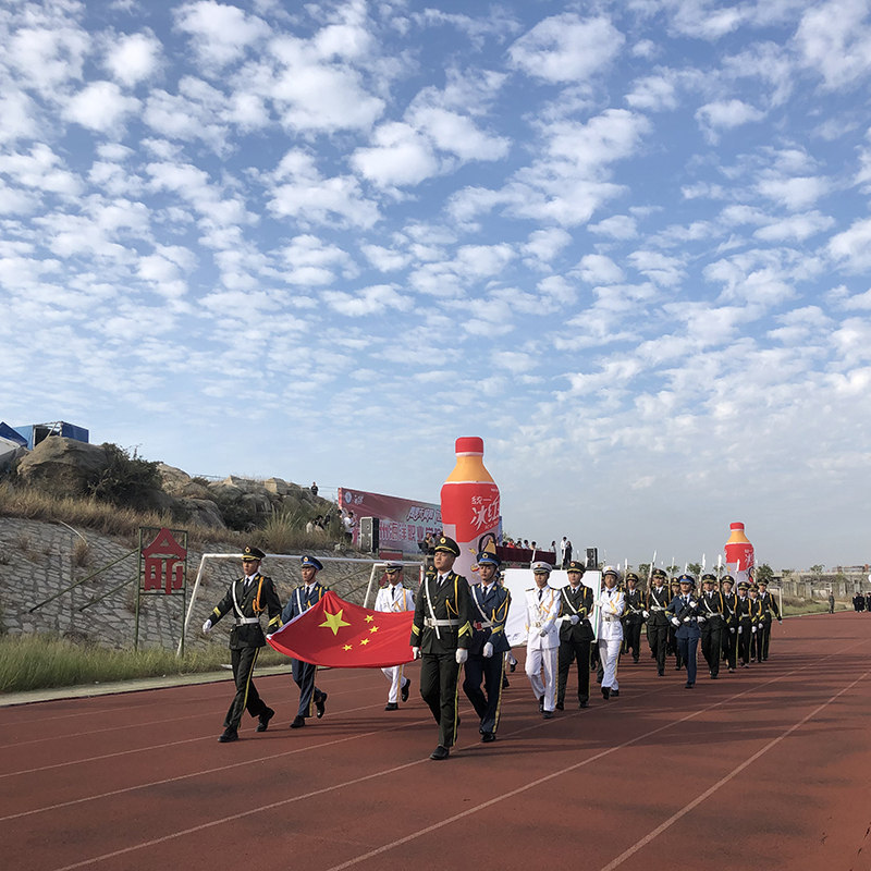 阳光明媚,微风阵阵,伴随着铿锵有力的《运动员进行曲》,国旗仪仗队,高举国旗、校旗和会徽,迈着坚定的步伐以最自信的姿态走过主席台,在他们炯炯有神的眼神里蕴藏的是对祖国的热爱,对泉海的美好未来祝福。紧随其后的是各二级学院代表方队,他们以昂扬的姿态迈着整齐铿锵有力的步伐依次进场。李明灿副书记宣布泉州海洋职业学院第六届运动会开幕式开始。全场肃静,国歌奏起!