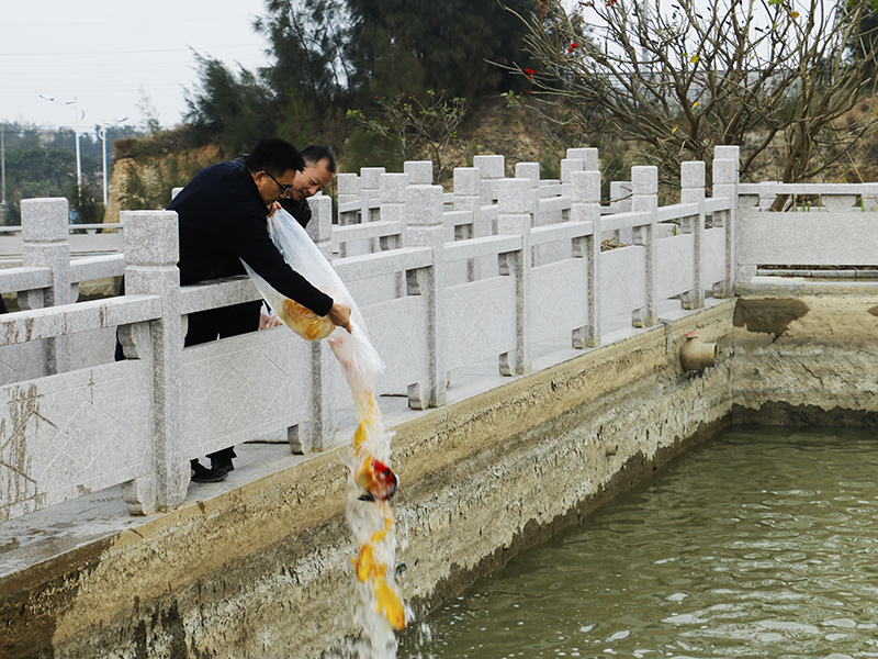 新闻中心讯(党政办报道)12月31日,海风拂过的泉海充满了迷人的气息。放鱼仪式在泉海七星湖举行。全体校领导、部分学生代表参加了此次活动。