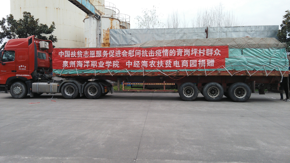 新闻中心讯(党政办报道)一捐纾两困,大爱更深情。泉州海洋职业学院职教扶贫基地、新型校办企业——中经海农扶贫电商园积极响应党中央、国务院关于做好疫情防控期间贫困地区农产品销售的号召,捐资50万向贫困地区陕西省汉中市勉县购买滞销的农副产品,无偿赠送给疫情严重湖北宜昌的贫困人口,助力疫区同胞共同抗疫。