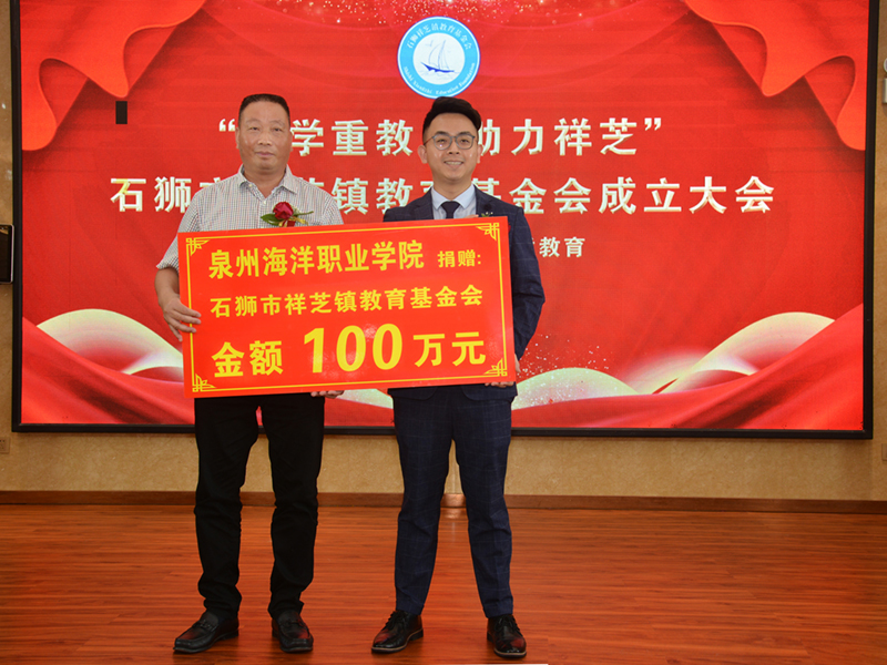 会上,蔡永鸿助理代表泉州海洋职业学院向祥芝镇教育基金会捐款100万元,用于更好地支持祥芝镇人才培养、支持祥芝镇教育事业的发展,与各界爱心人士同心合力共同实现“逐梦——家门口的优质教育”这个梦想。会上,黄春辉市长为蔡天真董事长颁发石狮市祥芝镇教育基金会永远荣誉理事长聘任书,以感谢和表彰蔡天真董事长热心教育事业。