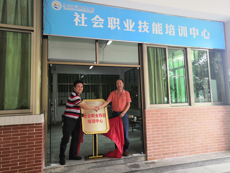 新闻中心讯(党政办报道)6月6日上午我校与福建宝顺科技有限公司共同创办的社会职业技能培训中心揭牌仪式在1号教学楼举行。我校董事长蔡天真先生、福建宝顺科技有限公司郭永坤参加仪式。