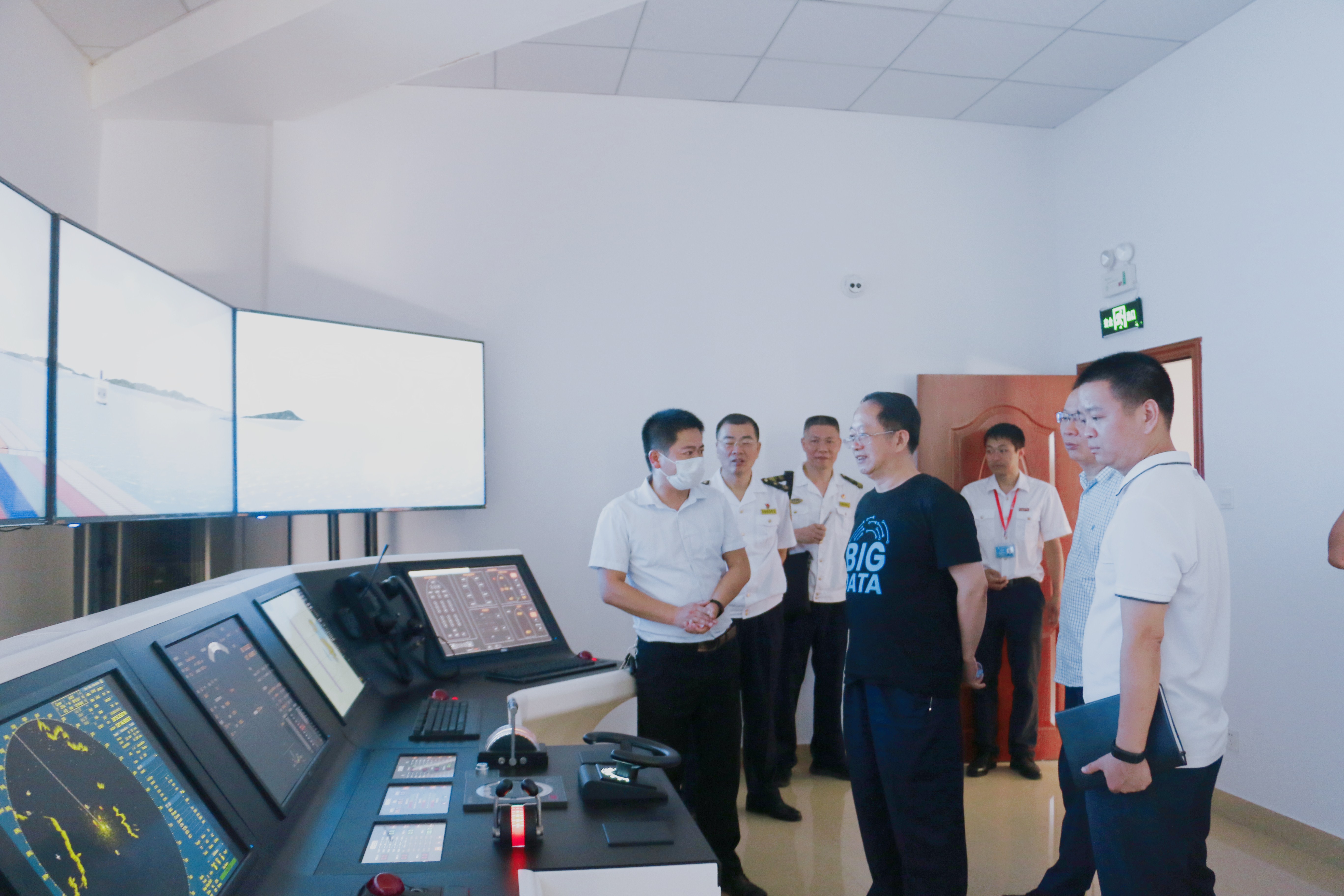 宋剑华副局长一行在蔡天真董事长等的陪同下参观我校360°航海模拟实训基地,现场调研我校船员教育和培训实训教学条件,指导我校实训教学建设工作。