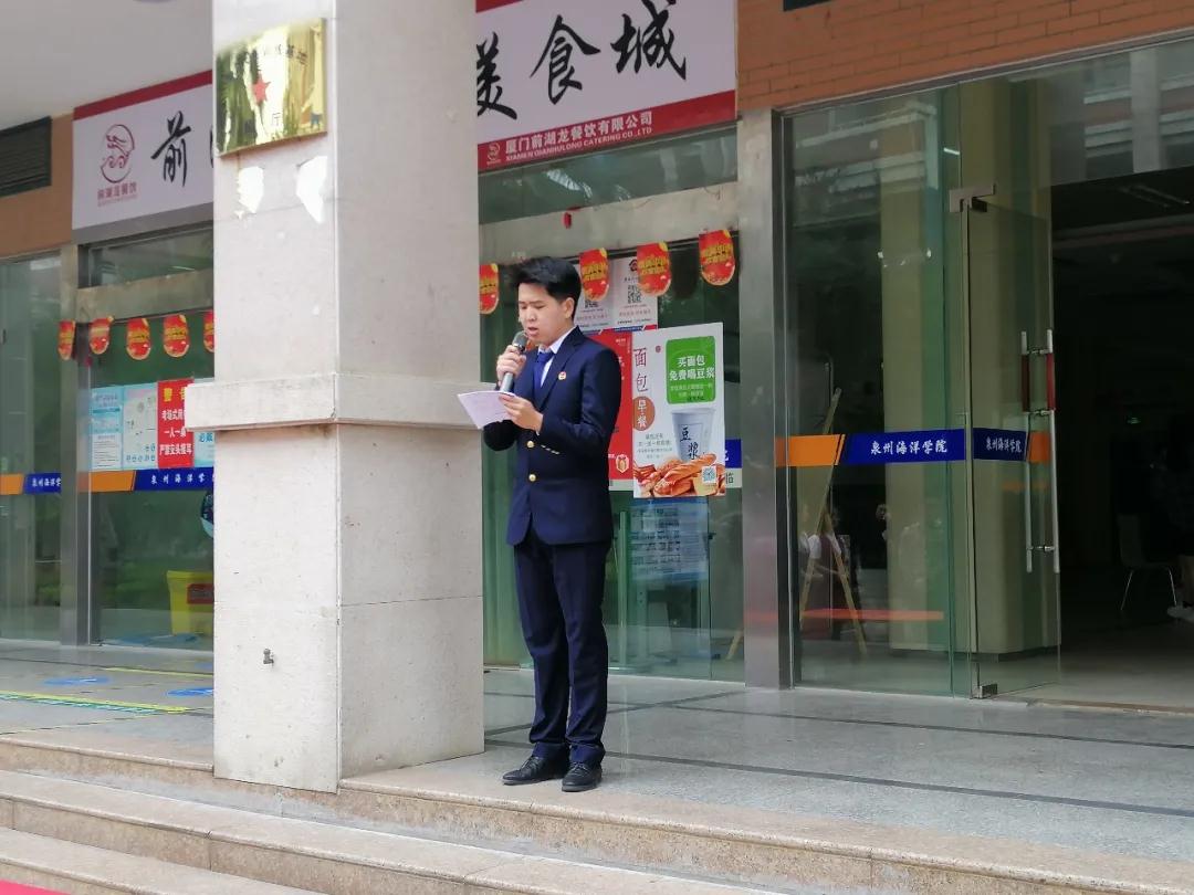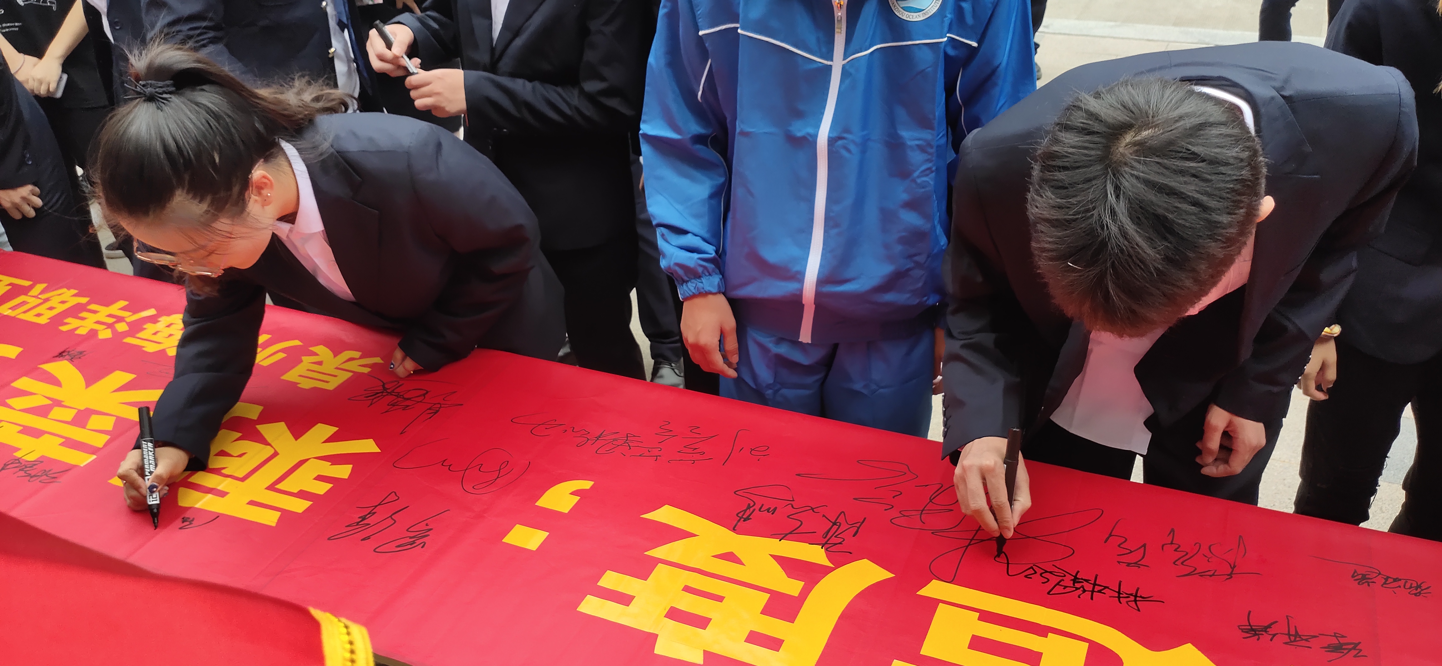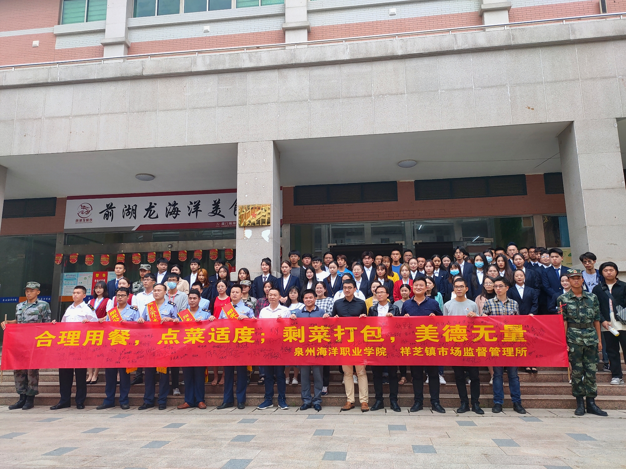 接下来由校领导、祥芝镇市场监督管理所领导、机关党支部老师及全体学生代表在横幅上签名,向全体师生发出倡议:厉行节约,杜绝浪费,从我做起,从我家做起,自觉把勤俭节约、艰苦奋斗的理念内化于心、外化于行。